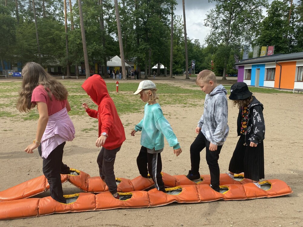 Poranek rozpoczęliśmy od gier i rysowania. Następnie udaliśmy się do parku linowego i na naukę jazdy na dwukołowym pojeździe elektrycznym, czyli segwayu. Po tych zajęciach odpoczywaliśmy na plaży, a potem graliśmy w mega wersje popularnych gier. Bawiliśmy się też w różne gry towarzyskie pod opieką wychowawczyni. Ten dzień był udany i z niecierpliwością czekamy na następny!