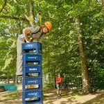 Kolejny dzień naszej kolonii rozpoczęliśmy od wyprawy na kulkowy poligon, na którym jeździliśmy rangerem z napędem 4x4, quadami oraz toczyliśmy się w kulach zorba. Po powrocie udaliśmy się na obiad, a po nim na pływanie smoczą łodzią. Następnie wraz z inną grupą urządziliśmy mecz korfballu. Po kolacji mieliśmy zajęcia z układania wieży ze skrzynek, na którą wspinaliśmy się w uprzęży z asekuracją.