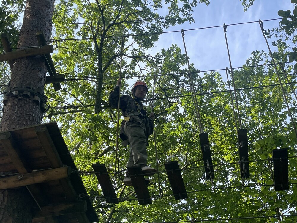 Dzień mieliśmy pełen emocji i aktywności. Rano udaliśmy się na park linowy, gdzie cieszyliśmy się przeżyciami pełnymi adrenaliny. Po południu odbyliśmy próbę tańca przed obozowym Talent Show, aby odpowiednio przygotować się do występu. Następnie przenieśliśmy się do części survivalowej. Nauczyliśmy się filtrować wodę i rozpalaliśmy ogniska, zdobywając umiejętności przydatne do przetrwania w trudnych warunkach. Później uczestniczyliśmy w grze terenowej Ranny Lotnik, podczas której zdobywaliśmy umiejętności udzielania pierwszej pomocy, próbując opatrzyć siebie nawzajem i konstruowaliśmy polowe nosze. Na zakończenie dnia odbyła się radosna dyskoteka, podczas której mogliśmy razem bawić się i spędzić czas w miłej atmosferze. Cały dzień był pełen nowych doświadczeń i nauki, których na pewno nie zapomnimy.