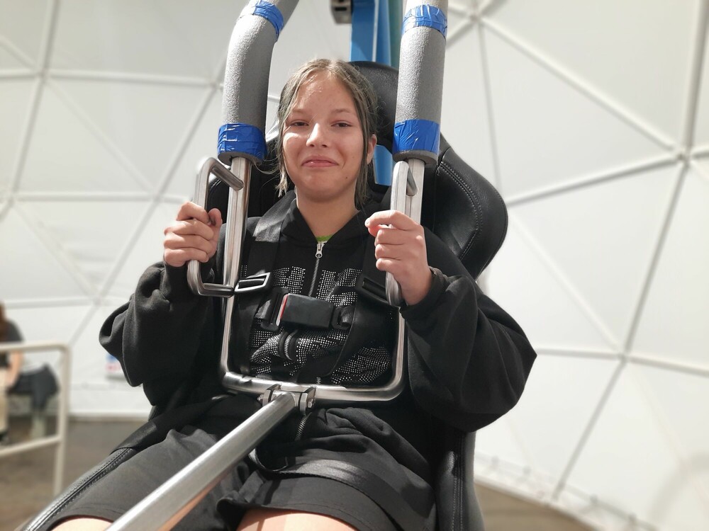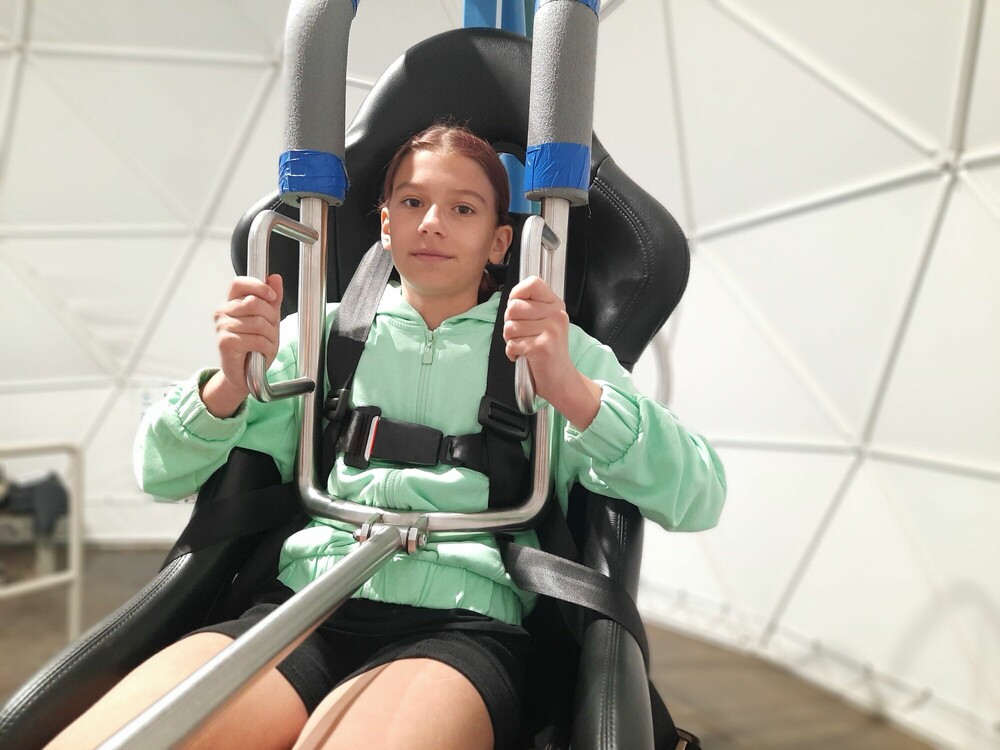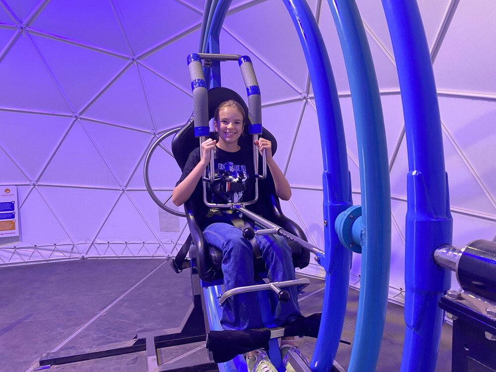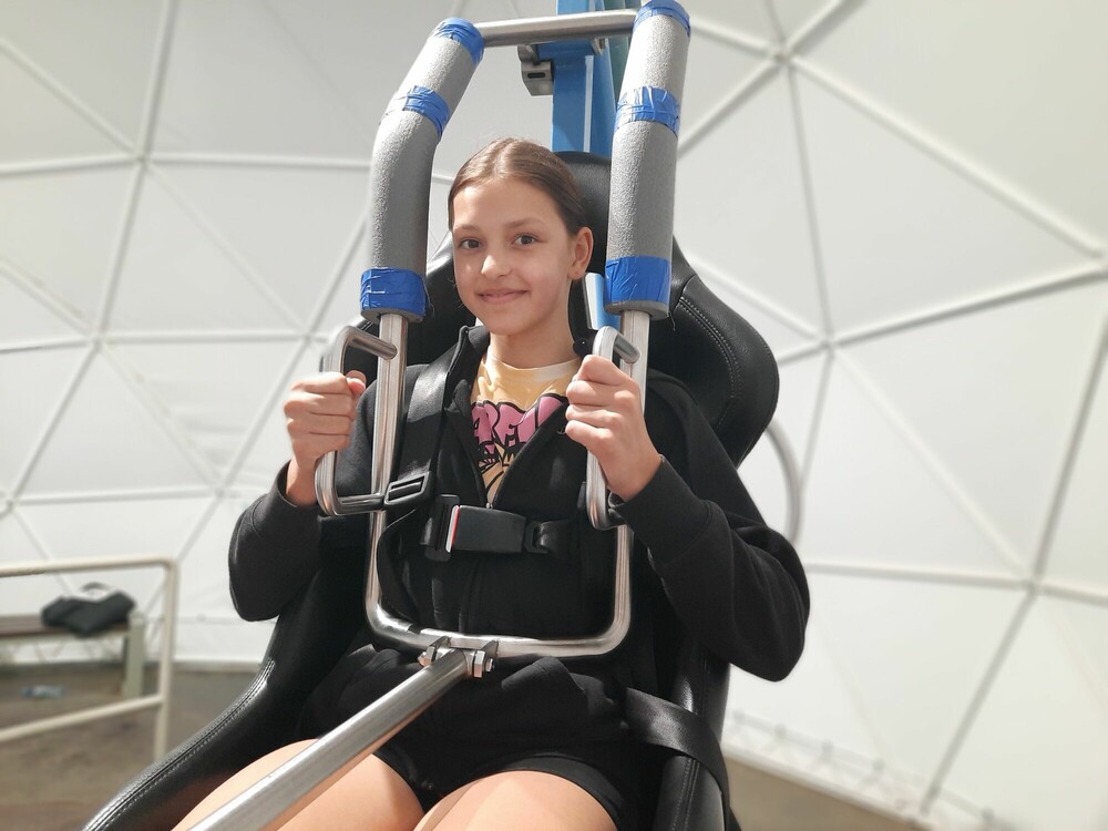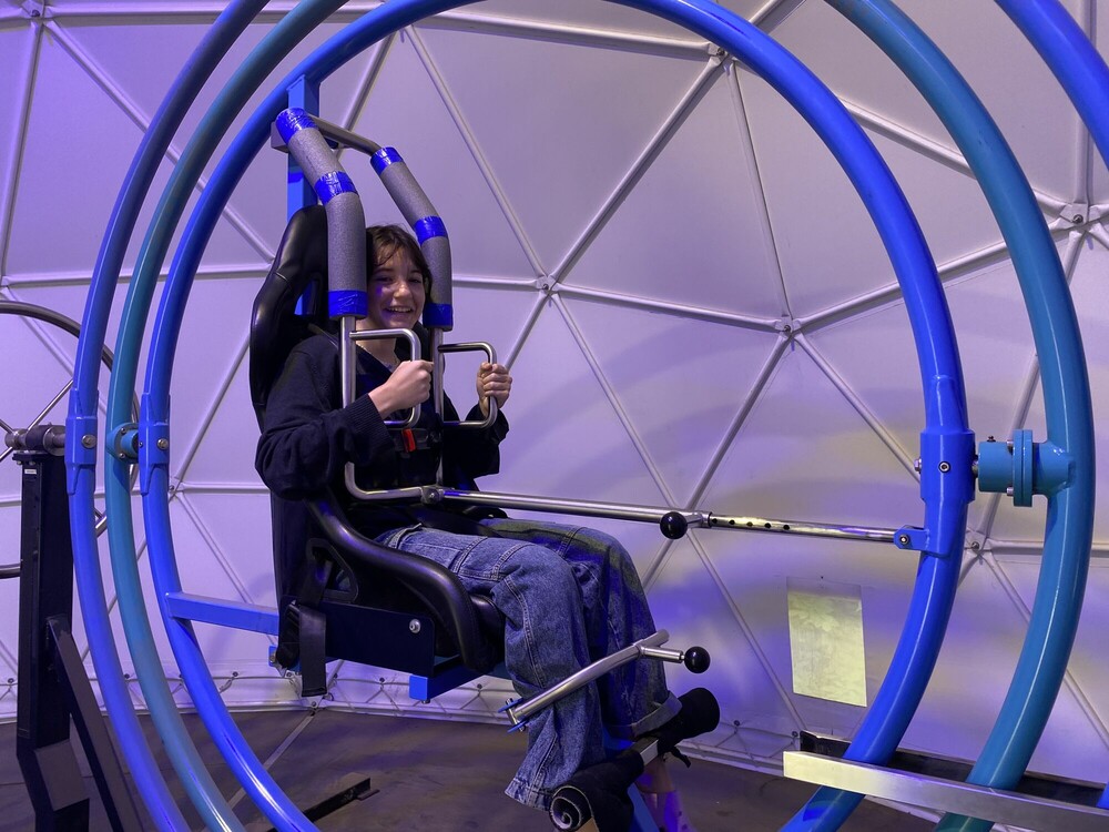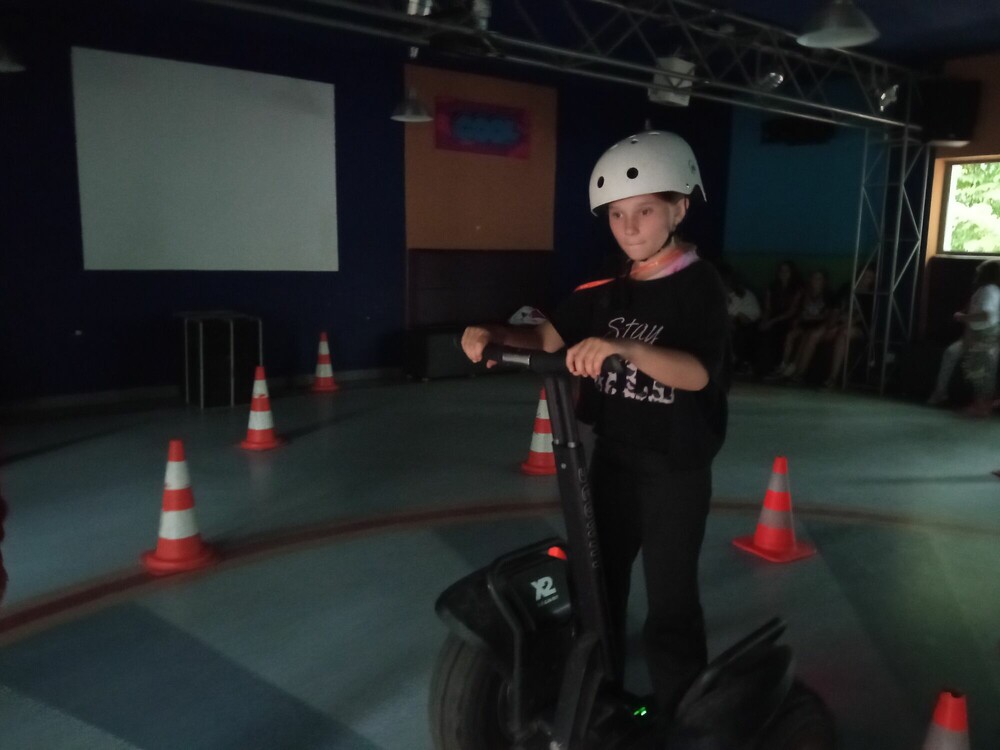 Dzień zaczęłyśmy od aktywnej gry integrującej naszą grupę - ludzie do ludzi. Musiałyśmy wykazać się zręcznością i pomysłowością. Następnie wykorzystując nasze doszlifowane umiejętności aktorskie, napisałyśmy i przedstawiłyśmy nasze autorskie spektakle. Przed obiadem obejrzałyśmy seans w niesamowitym kinie sferycznym. Po obiedzie, jak prawdziwe astronautki, przeżyłyśmy trening na żyroskopie. Później bawiłyśmy się w głuchy telefon na słowa i gesty, a dzień zakończyłyśmy apelem podsumowującym nasz obóz.
