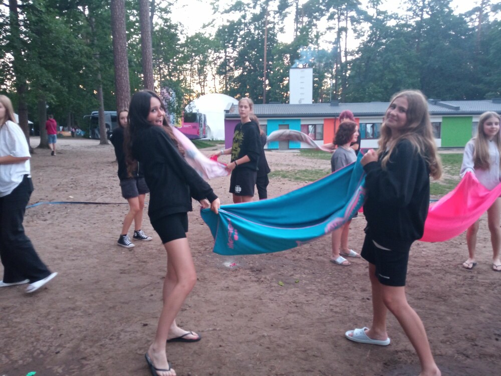 Dzień zaczęłyśmy warsztatami teatralnymi, na których przedstawiłyśmy improwizowane przedstawienia. Następnie grałyśmy w grę francuską, podczas której odpowiadałyśmy na pytania dzięki pomocy innych osób. Na kolejnych zajęciach przeszłyśmy ćwiczenia astronauty i odczułyśmy wrażenia podobne do odczuwalnych podczas startu rakiety kosmicznej. Grałyśmy także w żywioły - ziemia, woda, powietrze. Nasz dzień zakończył się apelem podsumowującym całą kolonię.