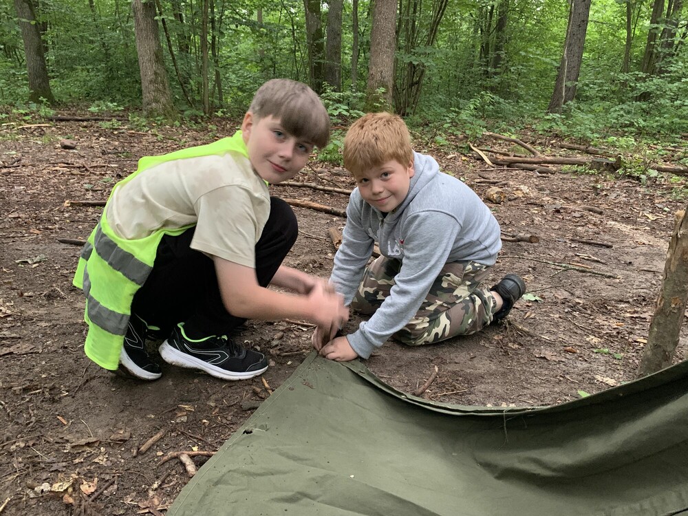 Nasz przedostatni kolonijny dzień rozpoczęliśmy od sumo. Ubrani w przebrania zawodnika sumo stoczyliśmy pojedynki na specjalnej arenie. Następnie poznaliśmy podstawy survivalu i jego rodzaje. Dowiedzieliśmy się, do czego służy puszka survivalowa i jak ją zrobić. Zbudowaliśmy również prowizoryczne schronienie. Na koniec dnia czekał na nas apel pożegnalny. Do zobaczenia za rok!