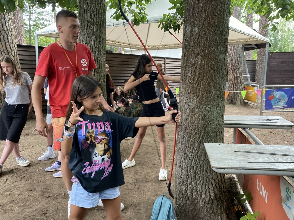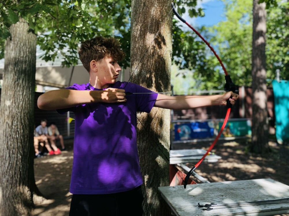 Dziś po śniadaniu mieliśmy zajęcia ze strzelania z wiatrówek. Później odpoczywaliśmy na plaży relaksując się nad jeziorem. Zajęcia o nazwie Ranny Lotnik przygotowały nas do prawidłowego udzielania pierwszej pomocy. Poszliśmy dziś też do lasu grając w podchody. Wieczorem graliśmy na wirtualnych dywanach. Następnym naszym zajęciem było strzelanie z łuku do celu. Dzień był bardzo aktywny.