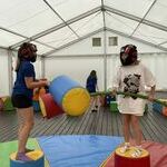 Ten piękny dzień zaczęliśmy od zabawy na wirtualnych dywanach. Zagraliśmy w wiele ciekawych gier, aż nie chcieliśmy wychodzić z sali. Gdy słoneczko było wystarczająco wysoko, poszliśmy na plażę, aby się poopalać i schłodzić w naszym jeziorku. Najlepszą atrakcją tego dnia był park linowy. Zrobiliśmy również piękne bransoletki. Kolejną atrakcją była nauka chodzenia na szczudłach i jazda na naprawdę dziwacznym rowerze. Na koniec tego aktywnego dnia weszliśmy do tajnej Strefy UFO, w której poznaliśmy wiele tajemnic dotyczących kosmosu.