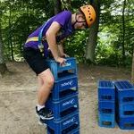 Drugiego dnia wszyscy aktywnie braliśmy udział w zajęciach. Po śniadaniu poszliśmy na park liniowy, a następnie na plażę, na której mieliśmy czas na wypoczynek i kąpiel w jeziorze pod nadzorem ratownika. Następnie wybraliśmy się na ściankę wspinaczkową, na której mogliśmy wykazać się sprytem i odwagą. Po krótkim odpoczynku zjedliśmy obiad. W dalszej kolejności czekały nas wirtualne dywany. Następnie dowiedzieliśmy się o fakultetach oraz innych sprawach organizacyjnych, po tym czekała na nas kolacja. Po kolacji udaliśmy się na kolejne zajęcia, na których wchodziliśmy na samodzielnie zbudowane wieże ze skrzynek.