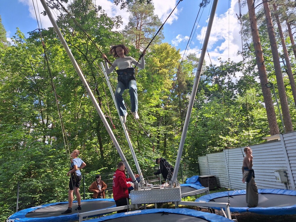 Dziś rano oddawaliśmy skoki na trampolinie, czyli eurobungee. Następnie odbyliśmy zapoznawcze spotkanie z panią pielęgniarką oraz poznaliśmy ofertę zajęć fakultatywnych. Graliśmy w dwa ognie. Byliśmy na plaży i pływaliśmy w jeziorze. Po południu wzięliśmy udział w warsztatach plastycznych, podczas których tworzyliśmy znaczki oraz poznaliśmy metodę quillingu. Wybraliśmy się również na park linowy. Wieczorem wspólnie bawiliśmy się na dyskotece.