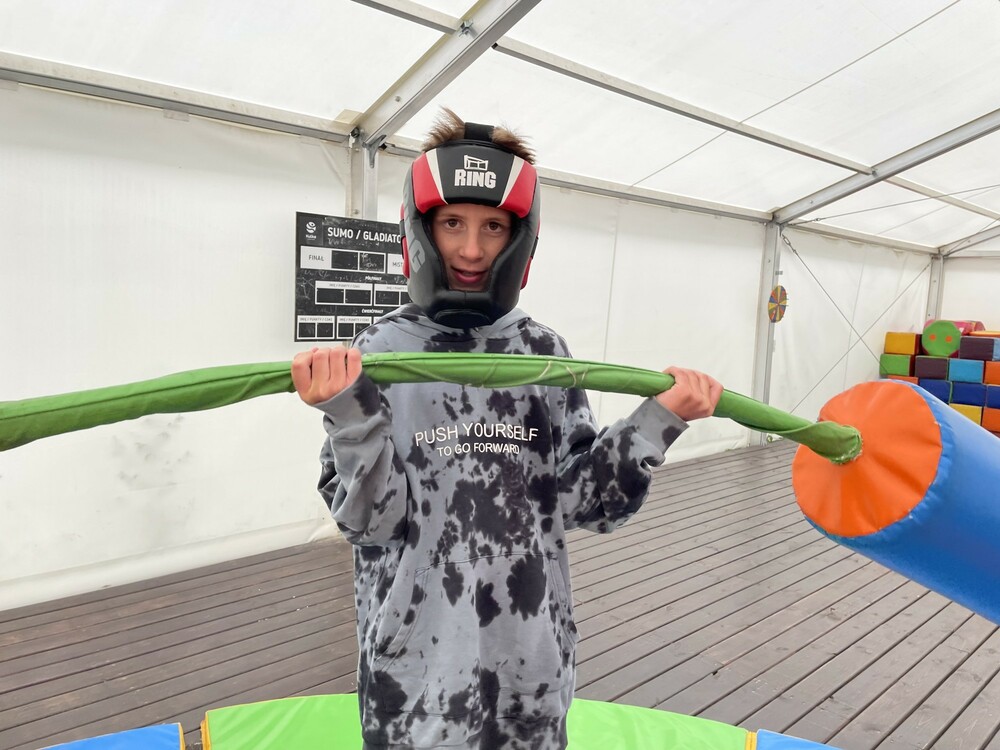 Dzień rozpoczęliśmy od walk gladiatorów, w których byliśmy wyposażeni w gumowe lance i rywalizowaliśmy na specjalnej kolorowej macie. Następnie poszliśmy na zajęcia łucznicze, poznaliśmy budowę łuku i prawidłową postawę strzelecką. Kolejnymi zajęciami były rowery wodne, zrobiliśmy sobie rekreacyjna wyprawę po jeziorze Łęsk. Po obiedzie wybraliśmy się na ściankę wspinaczkową, na której mogliśmy pokonać cztery trasy o różnych trudnościach. Później jedna z pań wychowawczyń przedstawiła nam, na jakie fakultety możemy się jeszcze zapisać. Dzień zakończyliśmy zajęciami z budowy quadu i jazdy na nim.