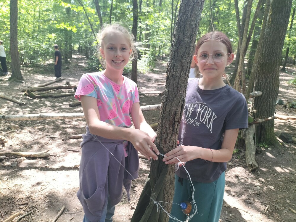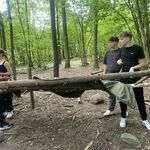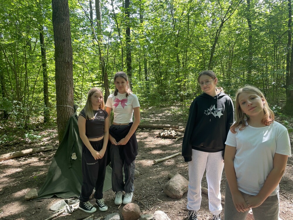 Dzień rozpoczął się od gry terenowej w lesie. Podzieleni na dwie drużyny stoczyliśmy potyczkę, zrywając sobie paski przytwierdzone wokół nadgarstków. Następnie przyszedł czas na wspinanie się na wieżę ze skrzynek, co wymagało dużej zręczności i odwagi. Po południu bawiliśmy się na grze Błędny Azymut. Szukaliśmy drogi przy użyciu kompasu, a później uczestniczyliśmy w zajęciach łącznościowych, ucząc się podstaw komunikacji. Dzień zakończył się radosną dyskoteką, podczas której wszyscy mogliśmy się wyszaleć przy ulubionej muzyce.