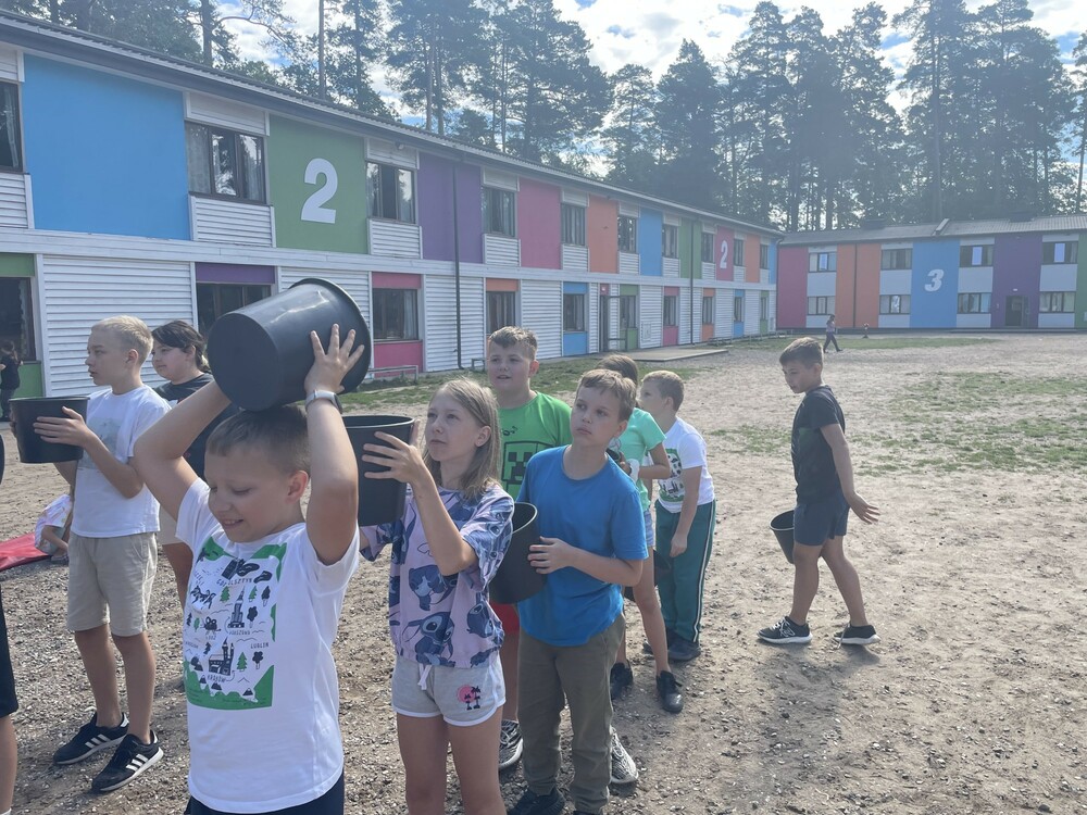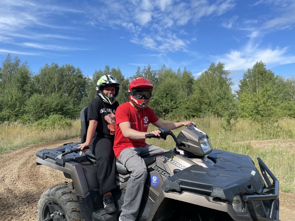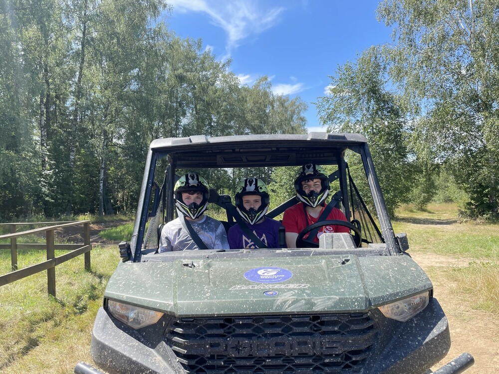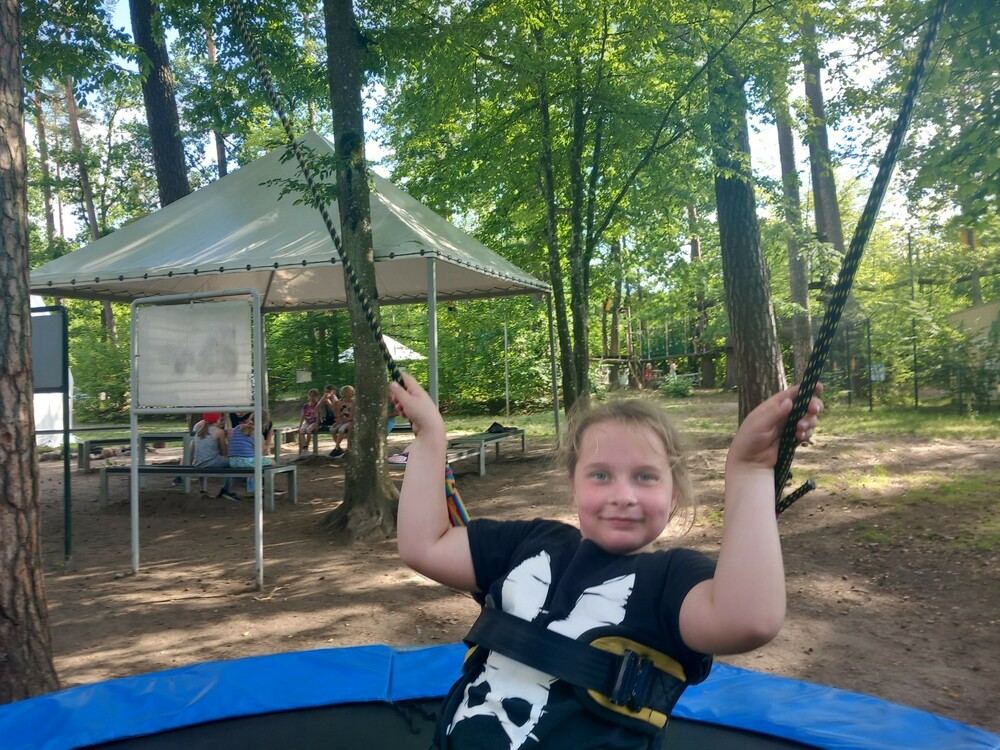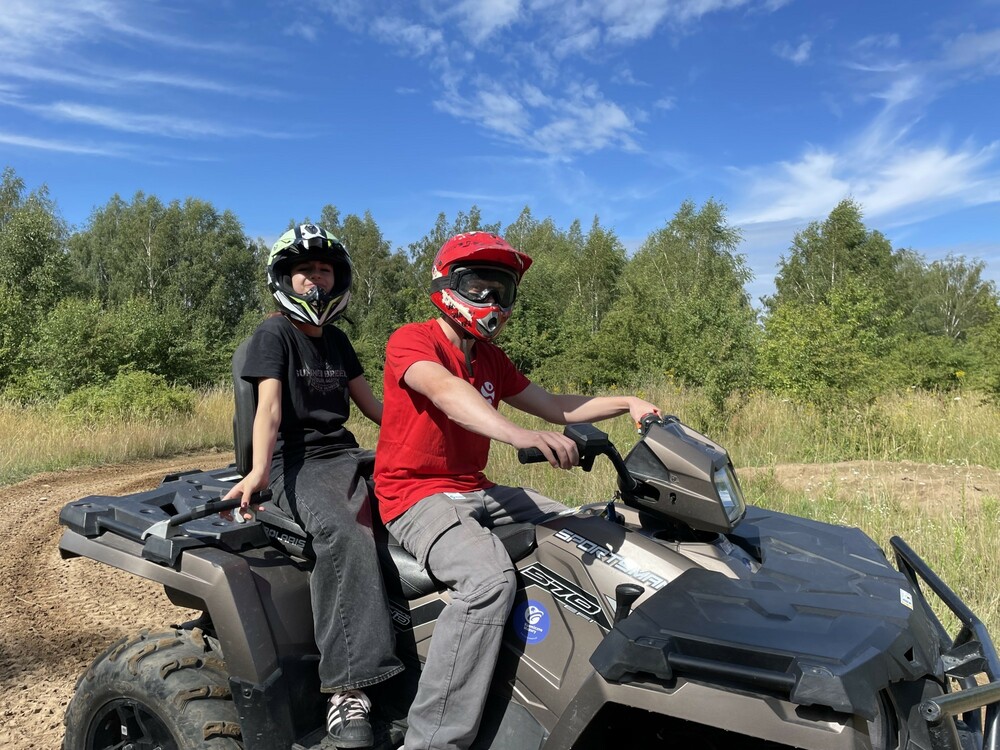 Dziś rano wybraliśmy się na poligon. Tam pokonaliśmy wymagający teren quadem, zjeżdżaliśmy w zorbie z górki oraz jeździliśmy rangerem. Po południu poszliśmy na plażę i kąpaliśmy się w jeziorze. Graliśmy też w baloniadę, czyli siatkówkę z balonami wypełnionymi wodą. Wieczorem wspólnie bawiliśmy się na dyskotece.