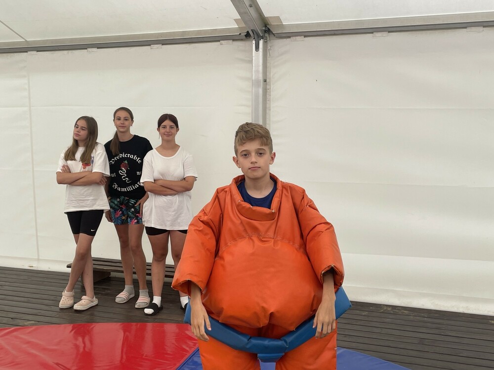Nasz kolejny dzień w Ośrodku Kulka rozpoczął się od walk sumo. Ubrani w specjalne stroje oraz kaski wzięliśmy udział w turnieju. Następnie odbyła się gra terenowa Enigma, podczas której uczyliśmy się odczytywania zaszyfrowanych wiadomości. Potem mieliśmy okazję spróbować strzelania z wiatrówek. Popołudnie spędziliśmy integrując się przy meczach piłki siatkowej, koszykówki i piłki nożnej. Zwieńczeniem dnia była niezapomniana dyskoteka, podczas której beztrosko bawiliśmy się do ulubionych utworów.