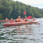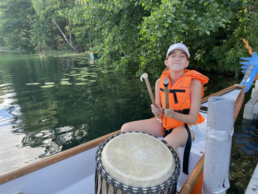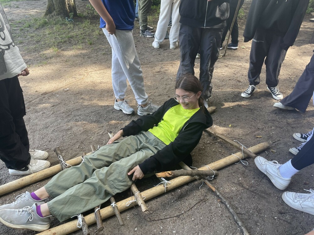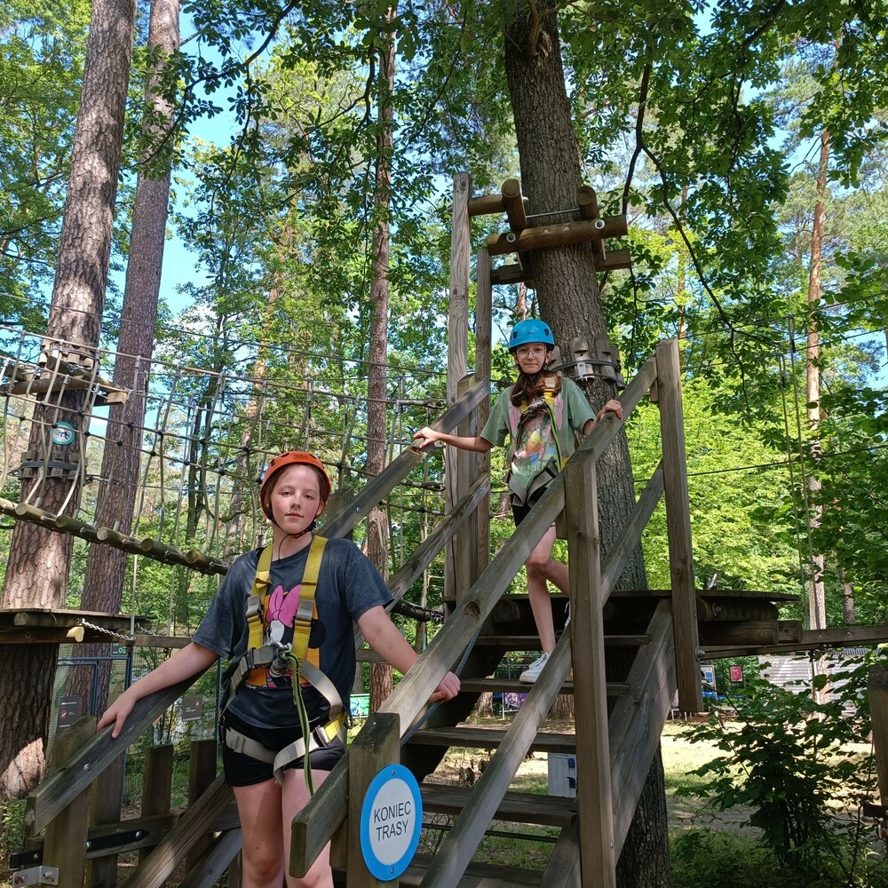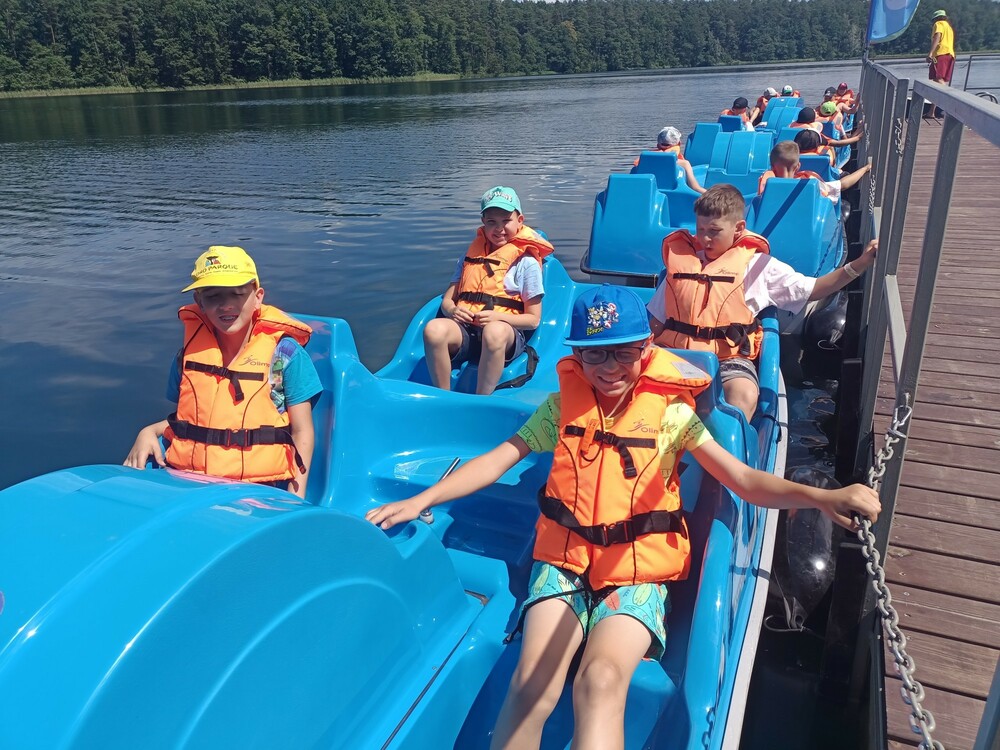 Dzień rozpoczęliśmy od sprawdzenia swoich umiejętności podczas wspinaczki na ściance. Następnie wzięliśmy udział w zabawie Ale Cyrk! i uczyliśmy się chodzenia na szczudłach oraz jazdy na dziwnym rowerze. Potem pływaliśmy w smoczej łodzi, na której Róża, jako czołowy bębniarz, wybijała rytm do wiosłowania. Robiliśmy także kolorowe bransoletki i pływaliśmy rowerkami wodnymi po jeziorze Łęsk. Na koniec wybraliśmy się na park linowy.