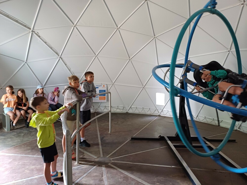 Szósty piękny dzień naszego obozu na Kulce. Zaczęliśmy go od filmu w kinie gwiezdnym, gdzie zanurzyliśmy się w trójwymiarowej projekcji na specjalnej kopule ogromnych rozmiarów. Potem wykorzystaliśmy nasze umiejętności strzelania z łuków i wzięliśmy udział w starciu łuczników. Na zajęciach Ale Cyrk! opanowaliśmy jazdę nietypowym rowerem, okazało się, że mamy w grupie świetnych cyrkowców. Następnie skakaliśmy bardzo wysoko na eurobungee wyposażeni w uprząż. To był aktywny dzień, pełen atrakcji.