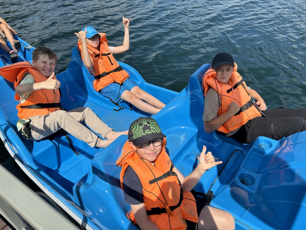 Nasz pierwszy dzień na półkoloniach zaczęliśmy od przywitania się ze wszystkimi i poznania się. Następnie obejrzeliśmy cały ośrodek. Naszymi pierwszymi zajęciami był park linowy. Później udaliśmy się na rowery wodne. Po obiedzie weszliśmy do tajnej Strefy UFO. Byliśmy bardzo zadowoleni, czekamy na następny dzień.