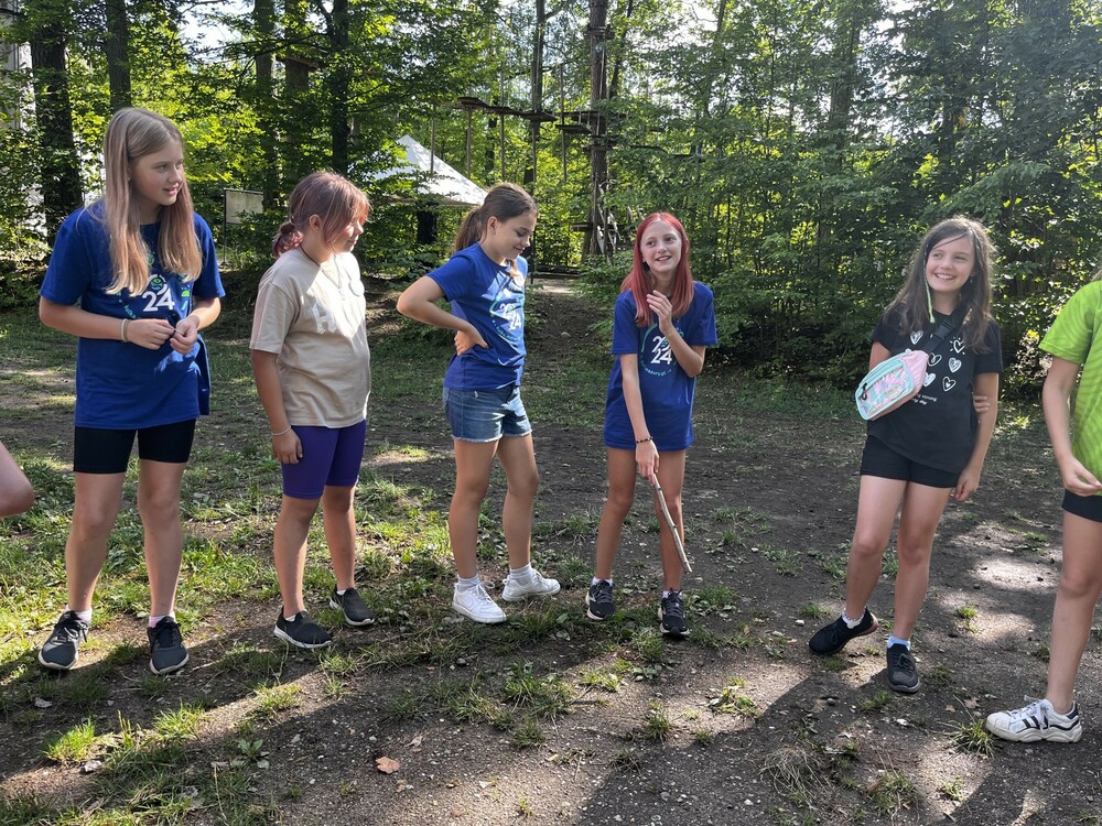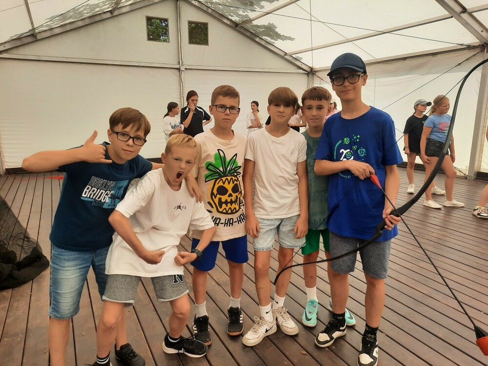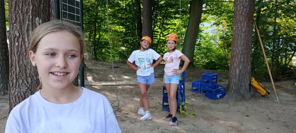 Kolejny wspaniały dzień za nami. Nasza pierwszą atrakcją były łuki. Na tych zajęciach poznaliśmy ich budowę oraz strzelaliśmy do celu. Każdemu z nas poszło świetnie. Następnie spędziliśmy czas na plaży, kąpiąc się w jeziorze oraz opalając na słońcu. Przed obiadem stoczyliśmy jeszcze walki sumo. Później ćwiczyliśmy swoją celność na strzelnicy paintballowej, strzelając z markerów do tarcz. Świetnie się też bawiliśmy na Akcji Integracji, podczas której mieliśmy okazję trochę bardziej się poznać. Pod koniec dnia byliśmy na atrakcji, na którą czekaliśmy od samego rana, czyli na parku linowym. To był niesamowity dzień pełen atrakcji, czekamy na kolejne.
