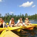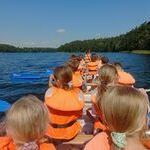 Dzień był słoneczny i zachęcał do zabawy. Bawiliśmy się wyśmienicie. Zaczęliśmy od potyczek laserowego paintballu. Potem popłynęliśmy kajakami po jeziorze Łęsk. Przed obiadem bawiliśmy się na wirtualnych dywanach. Dzisiejszy pobyt w Kulce zakończyliśmy wizytą w tajnej Strefie UFO.