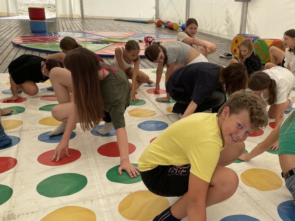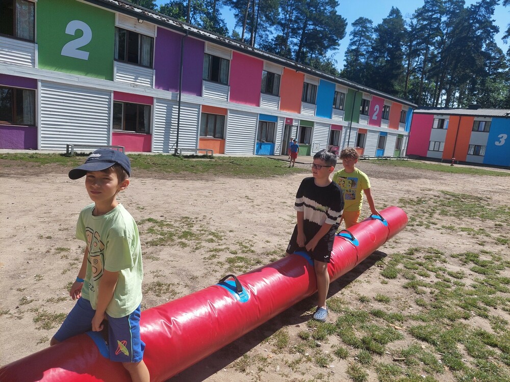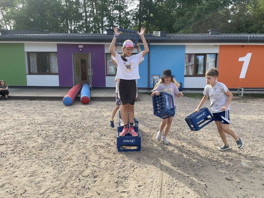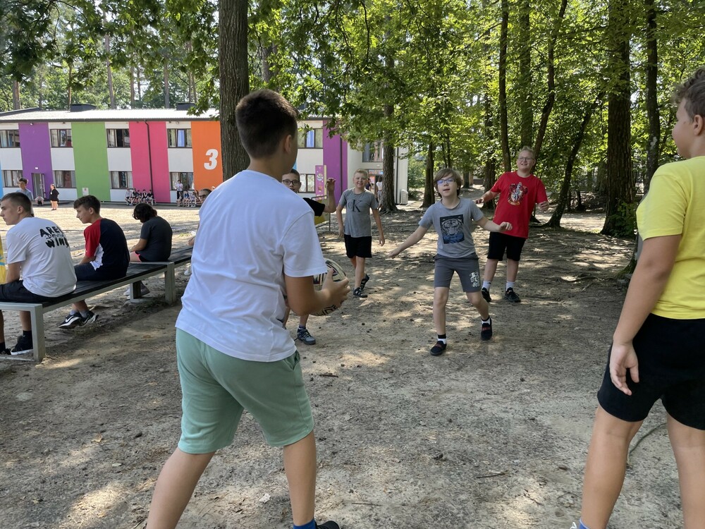 Dzisiaj od rana spędzaliśmy aktywnie czas na świeżym powietrzu. Rozegraliśmy mecz siatkówki oraz odwiedziliśmy plażę w naszym ośrodku. Mieliśmy również pakiet gier i zabaw integracyjnych, np. chodzenie po skrzynkach, wyścig rurowców czy przeciąganie liny. Ubrani w specjalne ochraniające stroje, wzięliśmy udział w walce sumo. Na koniec dnia odbyła się impreza na Poziomie X, na której wszyscy świetnie się bawiliśmy.