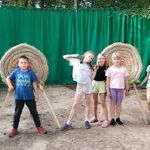Dzień rozpoczęliśmy od wspinania się na wieżę ze skrzynek, którą sami utworzyliśmy. Następnie wybraliśmy do kosmicznego żyroskopu. Potem była ścianka wspinaczkowa, na którą chętnie się wspinaliśmy. I jeszcze czekało nas strzelanie z łuku do specjalnej tarczy, czyli Archery Soft.