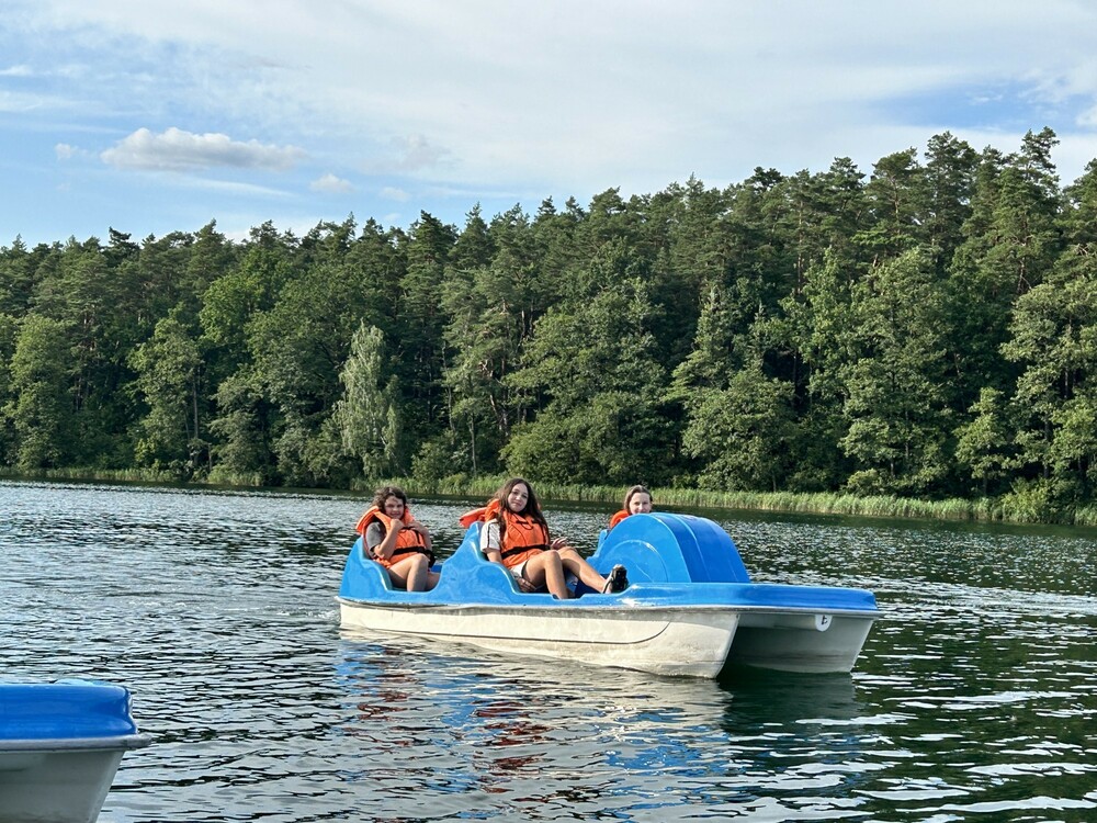 Dzień zaczęliśmy od zajęć na parku linowym, na którym mieliśmy okazję pokonać dwa poziomy trudności. Po obfitym drugim śniadaniu wybraliśmy się na zajęcia wodne. Pływaliśmy rowerkami wodnymi pod okiem ratownika. Następnie poszliśmy na naukę chodzenia na szczudłach. Po obiedzie odbyły się zajęcia na quadzie, na którym wspólnie z instruktorem pokonywaliśmy tor przeszkód.