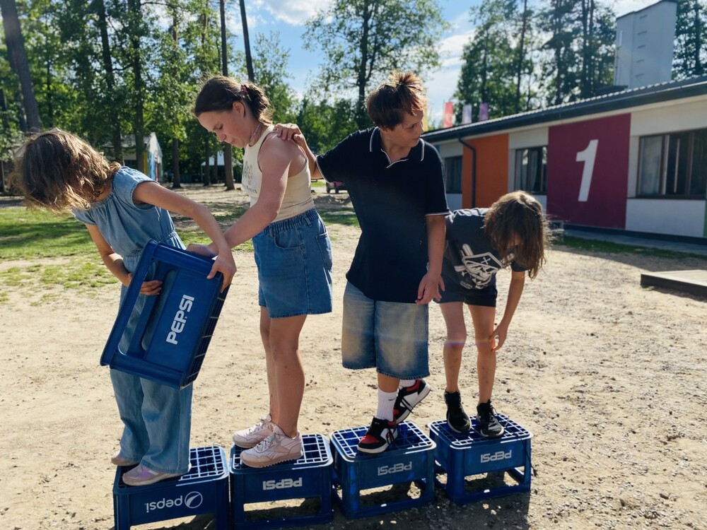 Pogoda na Mazurach niezmiennie dopisuje. Z tego powodu już od rana wybraliśmy się na plażę. Pod okiem ratownika kąpaliśmy się w jeziorze. Znaleźliśmy też czas na gry planszowe i zabawy z piłką. Po południu w naszym planie ponownie pojawiły się gry, tym razem w formacie XXL. Spróbowaliśmy swoich sił w mega twisterze, bierkach oraz ułożyliśmy scrabble i gigantyczną wieżę z klocków jenga. Następnie poznaliśmy zawartość encyklopedii kosmity Yazruma z naukowymi faktami o Ziemi i wszechświecie, a później sprawdziliśmy swoją wiedzę podczas quizu. Dzień zakończył się imprezą w hali koncertowej.