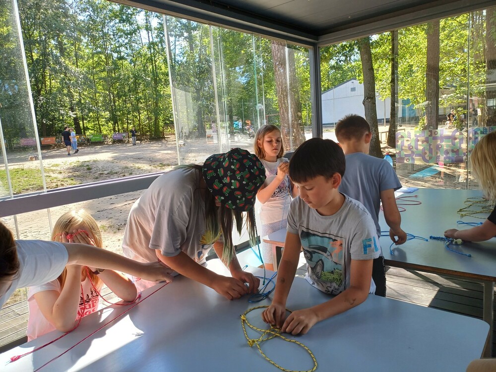 Kolejny dzień na naszym obozie rozpoczęliśmy od przeprawy kajakami turystycznymi po jeziorze Łęsk. Później przyszedł czas na zajęcia taneczne, podczas których mogliśmy stworzyć własne choreografie i zaprezentować je innym. Następnie udaliśmy się na plażę i kąpaliśmy się w jeziorze pod okiem ratowników. Po obiedzie nauczyliśmy się podstaw pierwszej pomocy i zbudowaliśmy własne nosze w trakcie fabularyzowanej gry terenowej. Mieliśmy też okazję wypróbować żyroskop i poczuć się jak podczas startu rakiety kosmicznej. Wieczorem wybraliśmy się na spacer po lesie i rozwiązywaliśmy pozostawione na trasie naukowe zagadki.