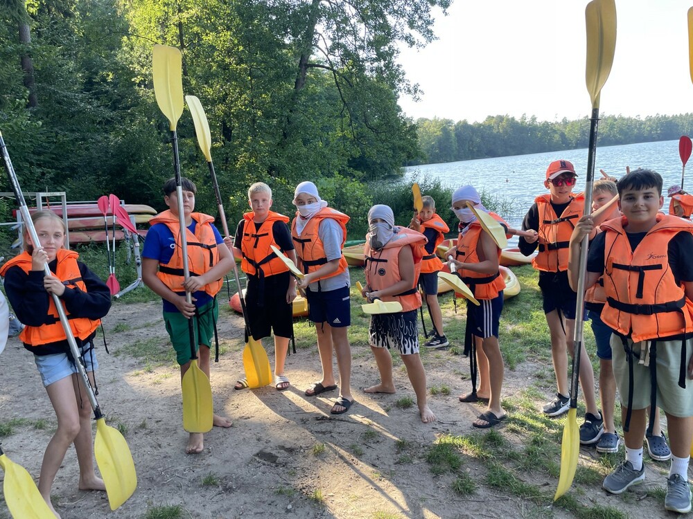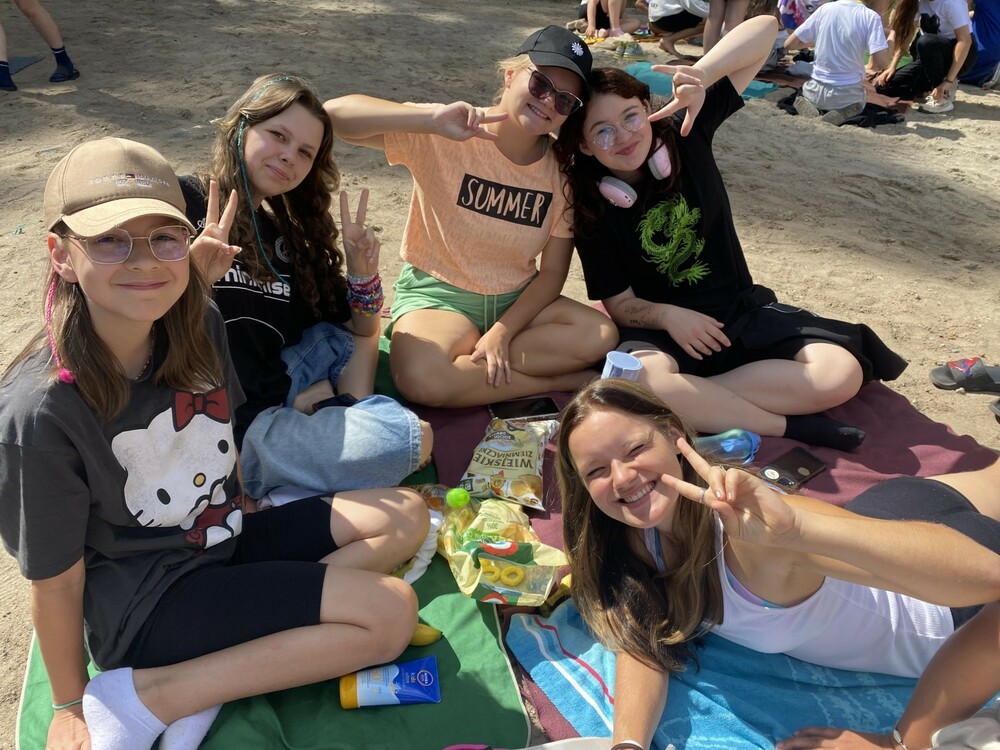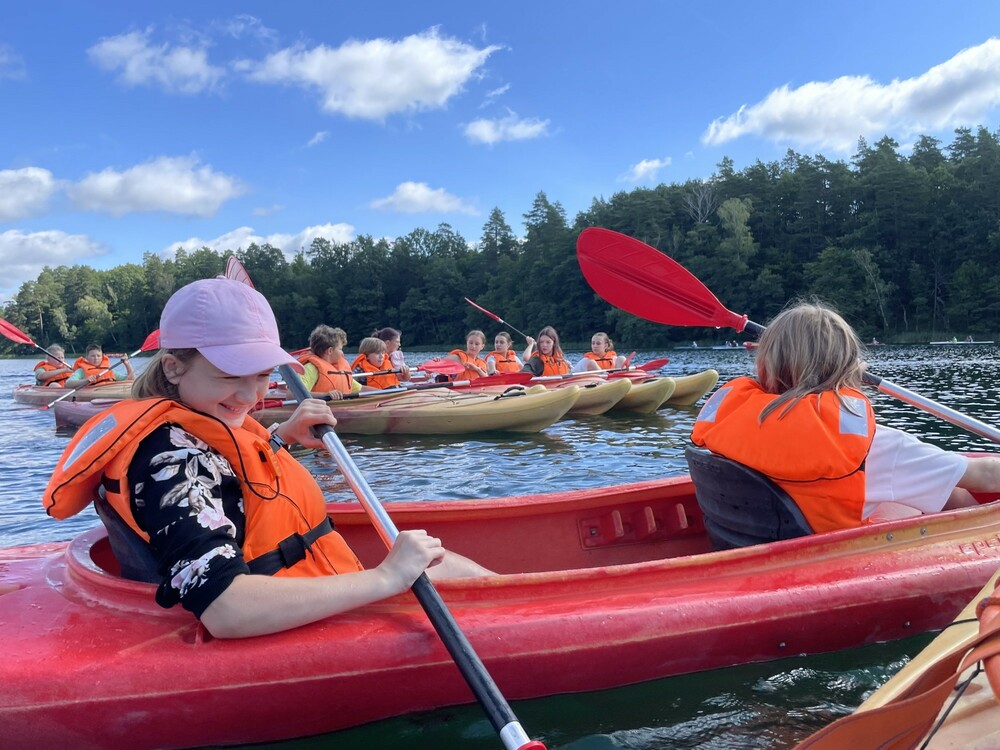 Ten obozowy dzień obfitował w przygody. Rano graliśmy w siatkówkę, ciesząc się wspólną zabawą. Potem plażowaliśmy, delektując się słońcem i relaksem nad wodą. Po południu spróbowaliśmy swoich sił w strzelaniu z markera paintballowego do tarczy, co było pełne emocji. Następnie pływaliśmy smoczą łodzią po jeziorze, przeżywając wspólnie niezapomniane chwile. Wieczorem wyruszyliśmy na grę terenową, pełną tajemnic i zagadek, która dostarczyła nam mnóstwo niezapomnianych wrażeń.
