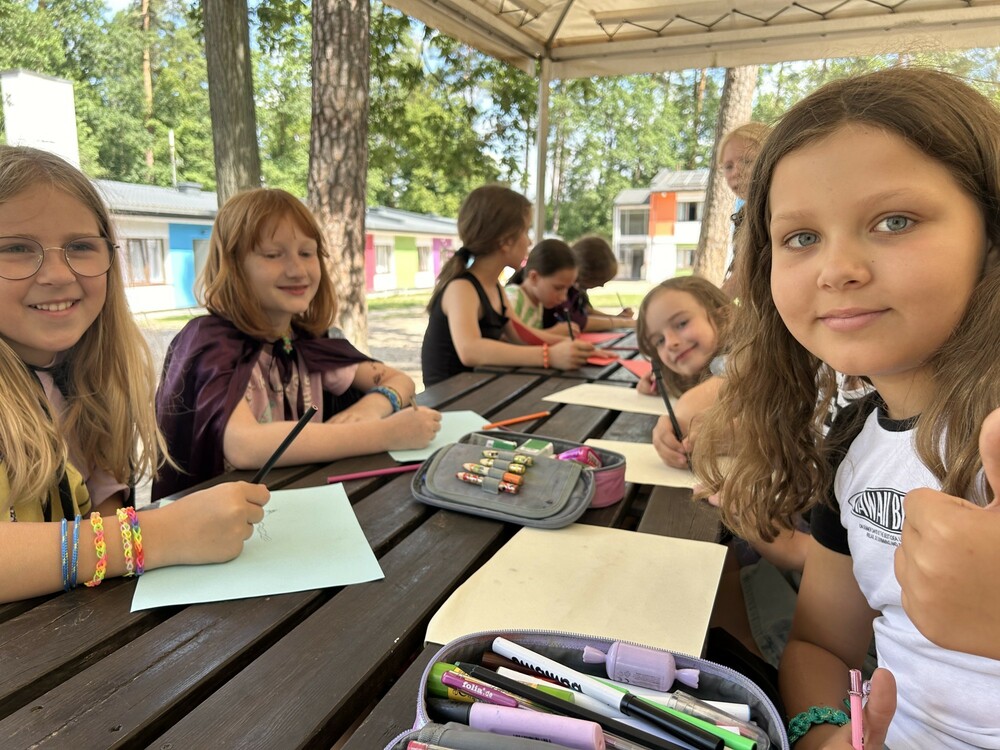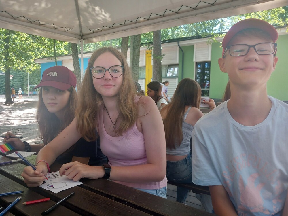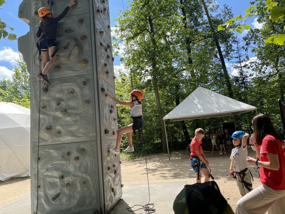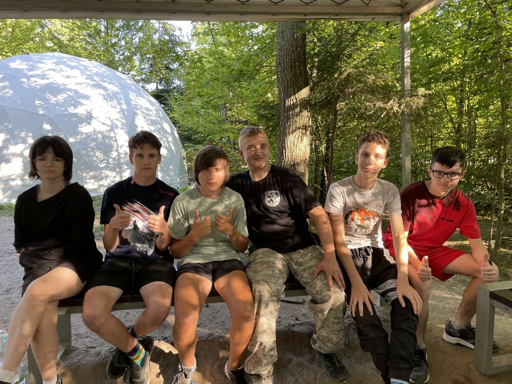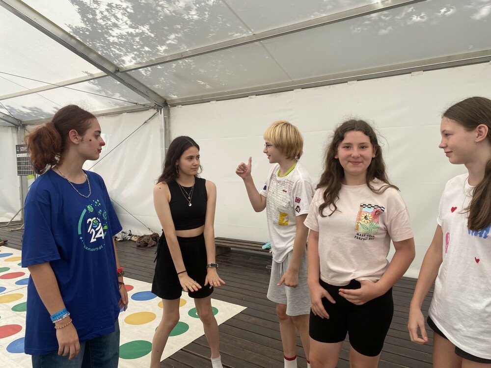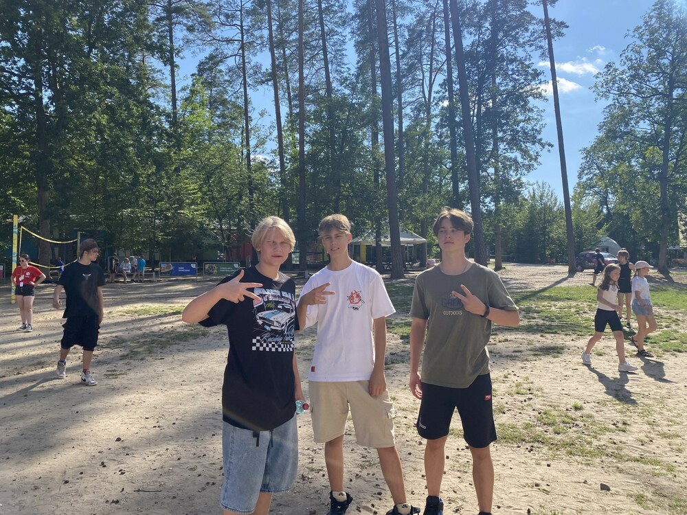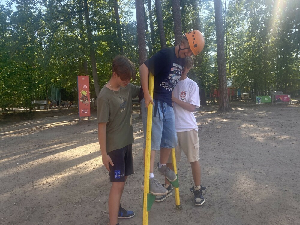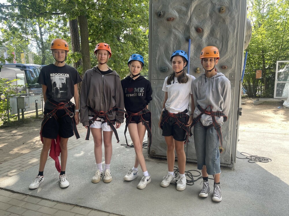 Dziś zaczęliśmy od wspinaczki na ściance, wykazując się odwagą i determinacją. Następnie uczyliśmy się pierwszej pomocy, co było bardzo pouczające. Potem dokończyliśmy flagę naszej grupy – wygląda wspaniale! Po obiedzie rozegraliśmy emocjonujące mecze siatkówki, a później ćwiczyliśmy strategię w terenie. Na zakończenie dnia zrelaksowaliśmy się, oglądając film w naszym sferycznym kinie. To był fantastyczny dzień!
