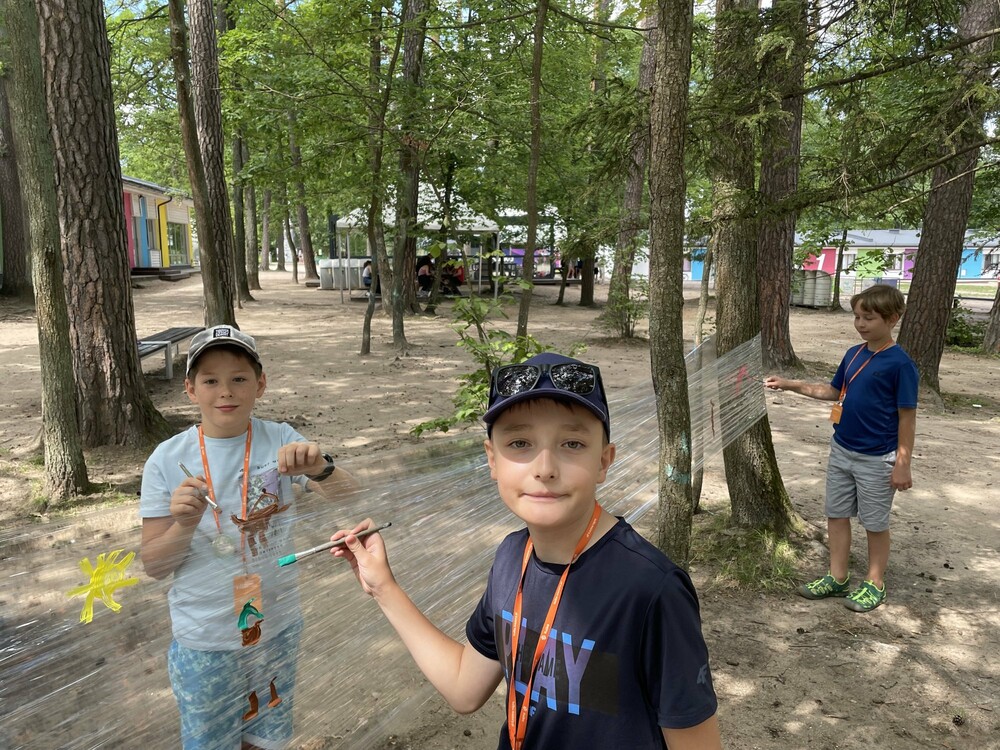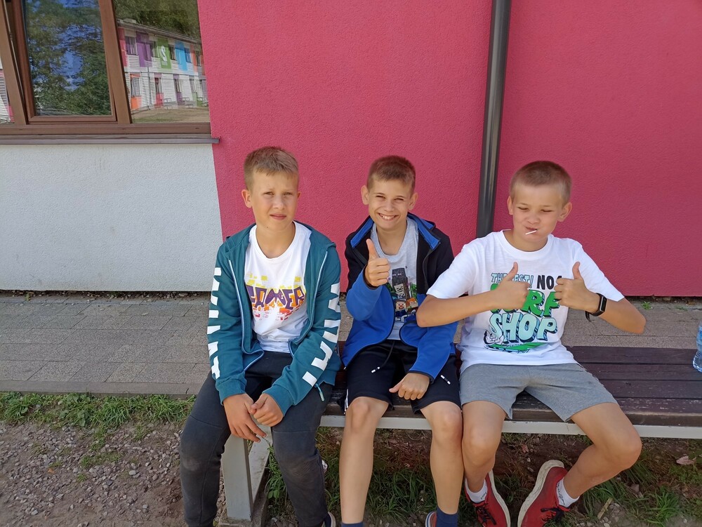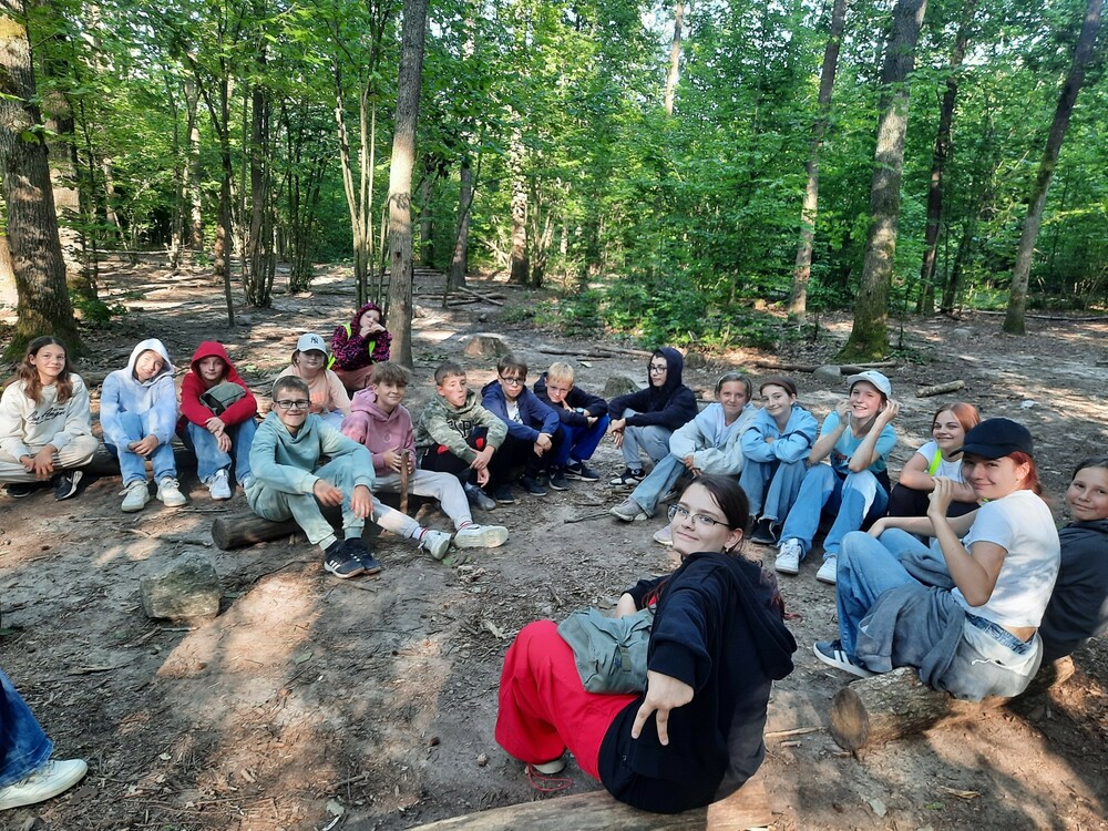 Dziś rano poszliśmy na spacer Leśną Ścieżką Edukacyjną. Czytaliśmy informacje przyrodnicze na tablicach. Następnie graliśmy w Kulka Challenge. Poznaliśmy szyfr GADERYPOLUKI i robiliśmy sobie zdjęcia z różnymi przedmiotami. Później odbyliśmy trening strzelecki, celując z wiatrówek do tarcz. Graliśmy również w mega wersje jengi, twistera i scrabble. Wieczorem udaliśmy się na grę terenową Świetliki i odgadywaliśmy zagadki.