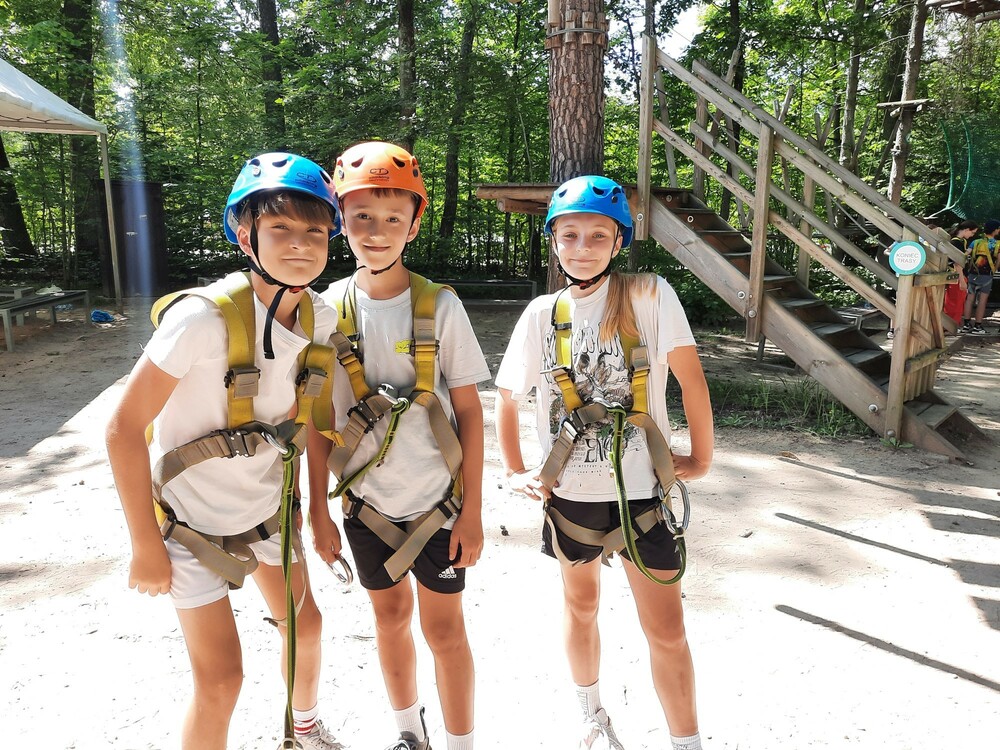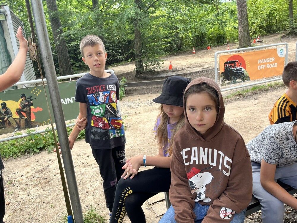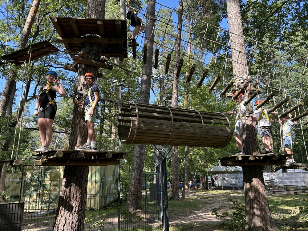 Ostatni dzień półkolonii spędziliśmy bardzo atrakcyjnie. Zaczęliśmy od parku linowego, który ma dwie trasy. Potem pływaliśmy rowerkami wodnymi po jeziorze Łęsk. Następnie fajnie strzelaliśmy z łuków z gumowymi przyssawkami. Ostatnimi zajęciami na naszych półkoloniach były Kosmiczne Puzzle, czyli rozwiązywanie zagadek i zdobywanie kolejnych elementów układanki. To już koniec naszych przygód na półkoloniach, do zobaczenia!