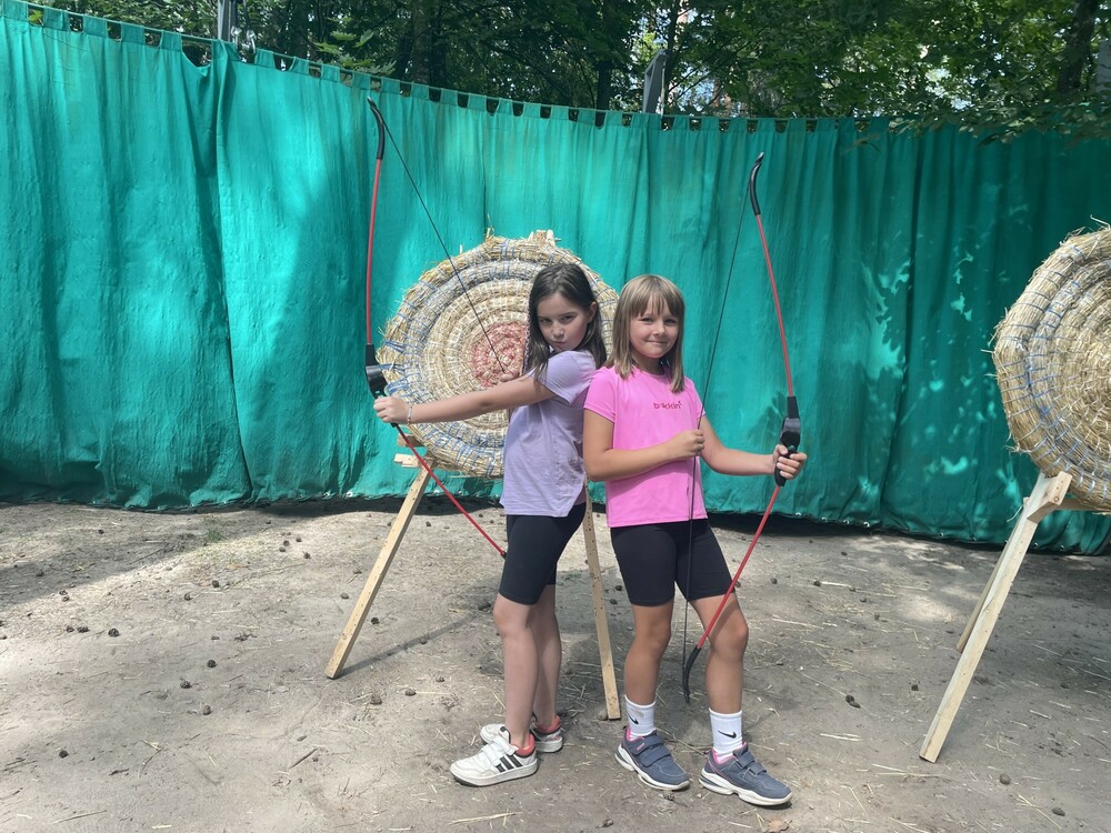 Ostatni dzień naszych półkolonii rozpoczął się od strzelania do tarczy z wiatrówek. Ułożyliśmy dziś kosmiczne puzzle rozwiązując przeróżne zagadki. Malowaliśmy w chmurach przeróżne arcydzieła na pamiątkę naszych półkolonii. Zaś na koniec strzelaliśmy z łuku. Czas na półkoloniach upłynął nam szybko, dziękujemy za wspólną zabawę!