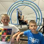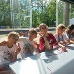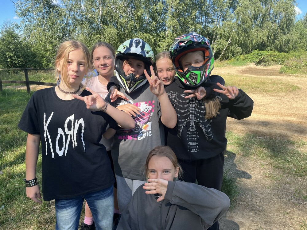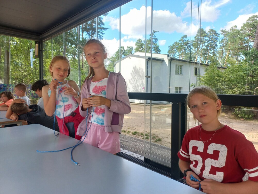 Szósty dzień kolonii rozpoczął się od długiego spaceru przez las do pobliskiej miejscowości. Później mieliśmy okazję przejść trening astronautów na kosmicznym żyroskopie - symulatorze wrażeń podczas startu rakiety. Po obiedzie nauczyliśmy się zaplatać bransoletki ze sznurka i spędziliśmy razem czas na boisku. Mieliśmy również okazję postrzelać z wiatrówek sprężynowych do tarcz. Wieczorem odbyła się impreza taneczna na Poziomie X.