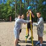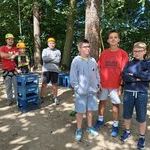 Rano część kolonistów pojechała na fakultatywną wycieczkę do Olsztyna. Nasza grupa w tym czasie rozegrała mecze piłki nożnej i koszykowej, a także wzięła udział w leśnej grze wojennej, polegającej na zrywaniu wstążek przeciwnikom. Następnie mieliśmy możliwość pokonania swoich lęków, poprzez wejście na cztery trasy ścianki wspinaczkowej. Na zakończenie dnia dowiedzieliśmy się, czym są azymuty i jak się po nich poruszać oraz potem jeszcze wykonaliśmy flagę swojego obozu.