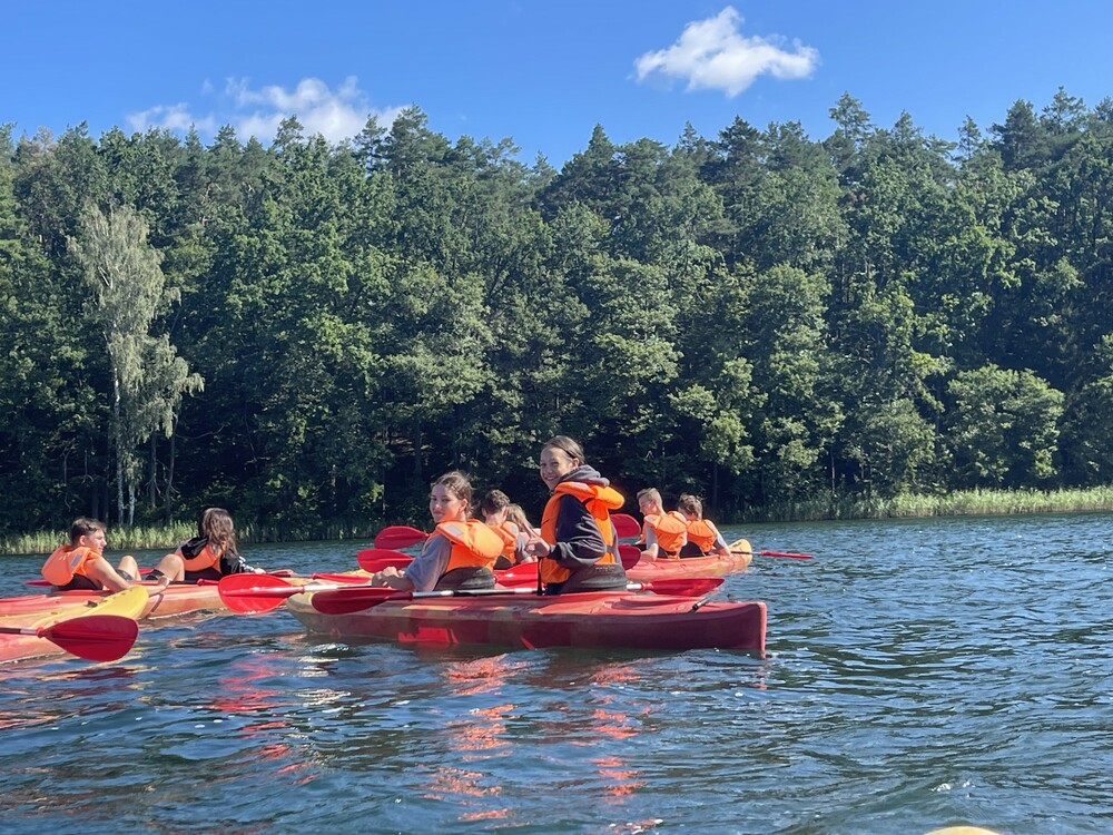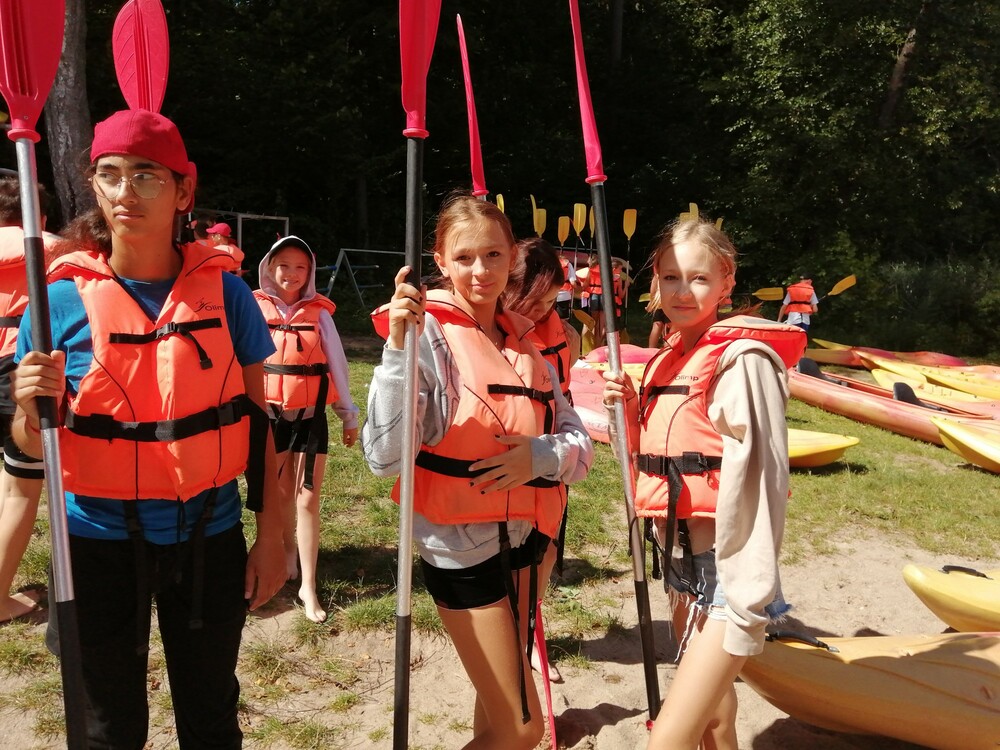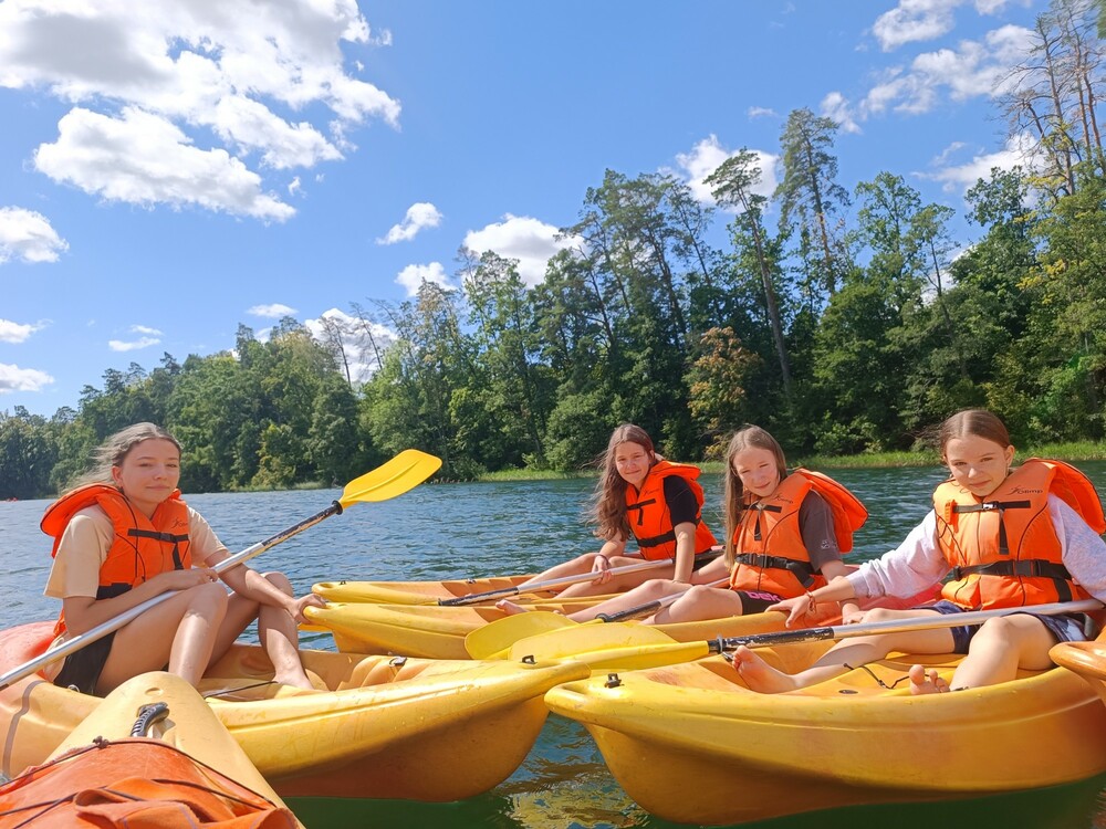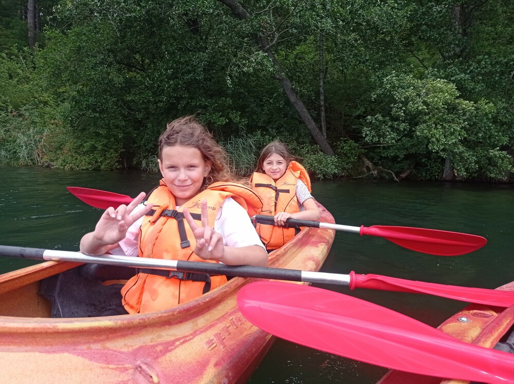 Dzisiaj rozpoczęłyśmy od Kosmicznych Puzzli, czyli gry podczas której miałyśmy za zadanie zdobyć klucze do szafki z ukrytymi w niej elementami do układanki. Potem odbyły się walki gladiatorek, na których wyposażone w gumowe lance rywalizowałyśmy na specjalnej macie. Podczas wyprawy kajakowej mogłyśmy podziwiać krajobraz jeziora Łęsk. Później wypoczywałyśmy na plaży, a wieczorem tańczyłyśmy w hali koncertowej na imprezie na Poziomie X.