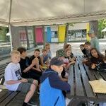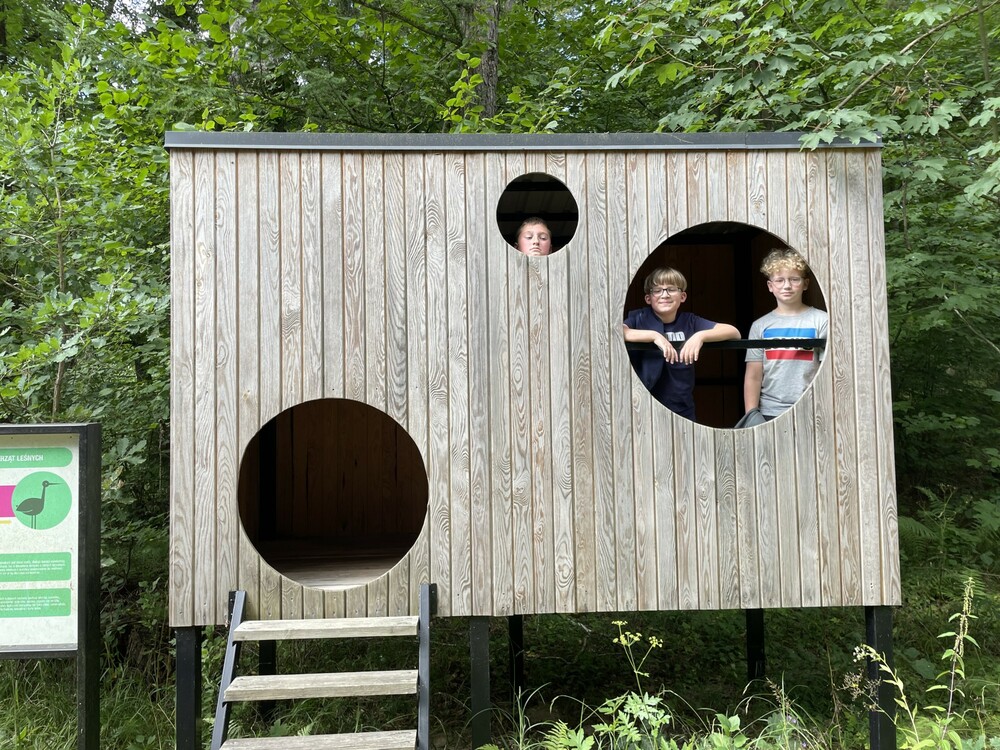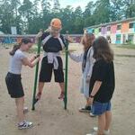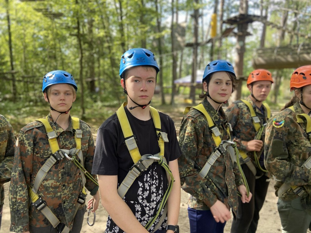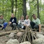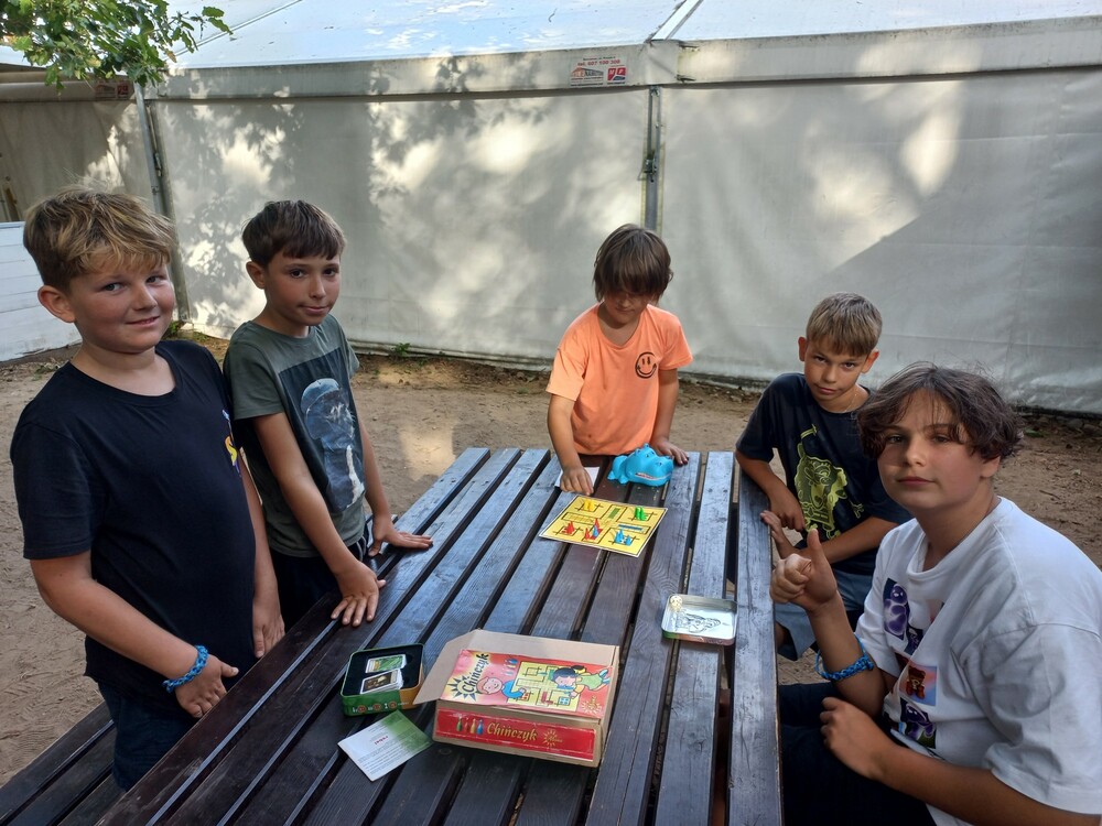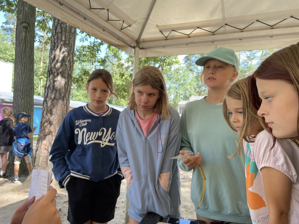 Dziś rano spędziliśmy czas na podobozie. Graliśmy w różne gry planszowe oraz kilka rund gry w mafię. Następnie wybraliśmy się do lasu na zajęcia w lesie. Tam zagraliśmy w ciekawą zabawę polegającą na zrywaniu sobie nawzajem opasek z rąk. Po obiedzie weszliśmy na park linowy, na którym czekały nas dwie trasy do przejścia. Dziś znaleźliśmy też czas na to, żeby namalować naszą flagę. Ostatnie dzisiejsze zajęcia to seans filmowy w kinie sferycznym.