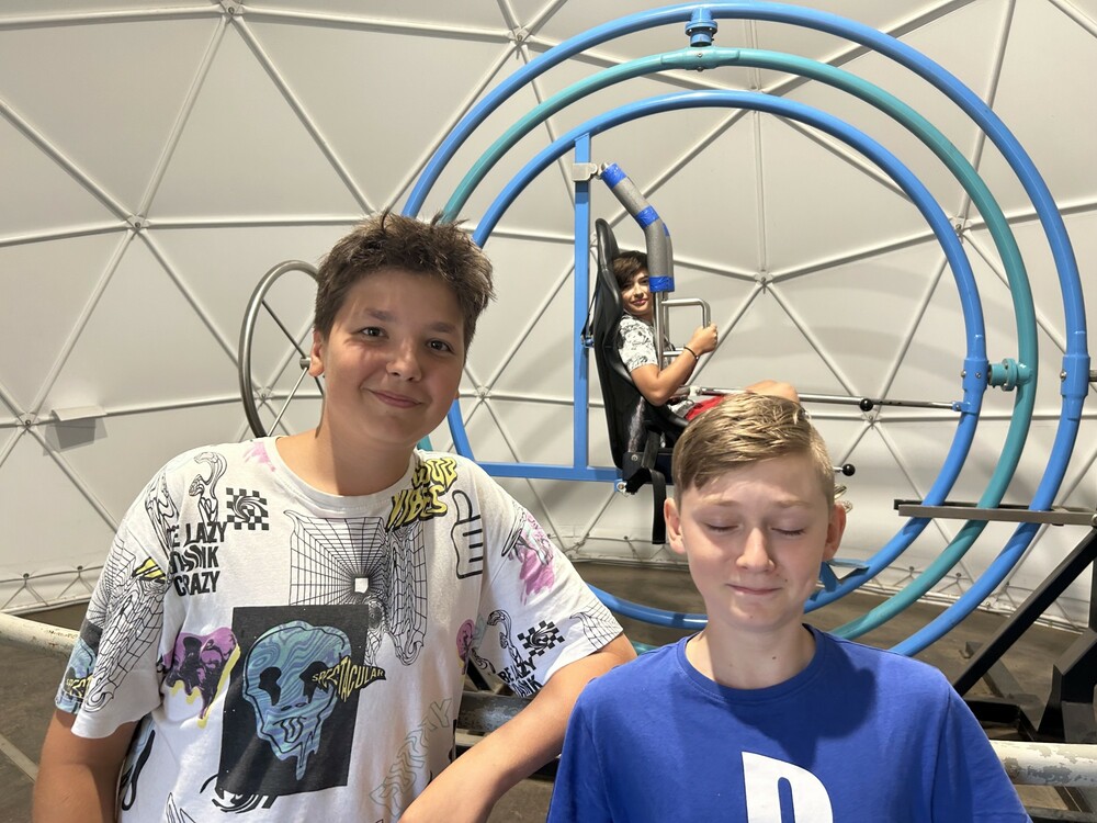 Wtorek minął nam bardzo aktywnie! Po śniadaniu wyruszyliśmy na wyprawę rowerami wodnymi po jeziorze Łęsk oraz wczuliśmy się w prawdziwych astronautów podczas zajęć na żyroskopie. Następnie poznaliśmy historię Kosmicznych Mazur, osiągając najwyższy stopień wtajemniczenia w Strefie UFO. Po obiedzie uczyliśmy posługiwać się wiatrówką sprężynową, celując do papierowych tarcz. Wciąż integrowaliśmy się ze sobą podczas meczu siatkówki, a dzień zakończyliśmy imprezą na Poziomie X, śpiewając i tańcząc do naszych ulubionych kawałków muzycznych.