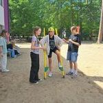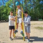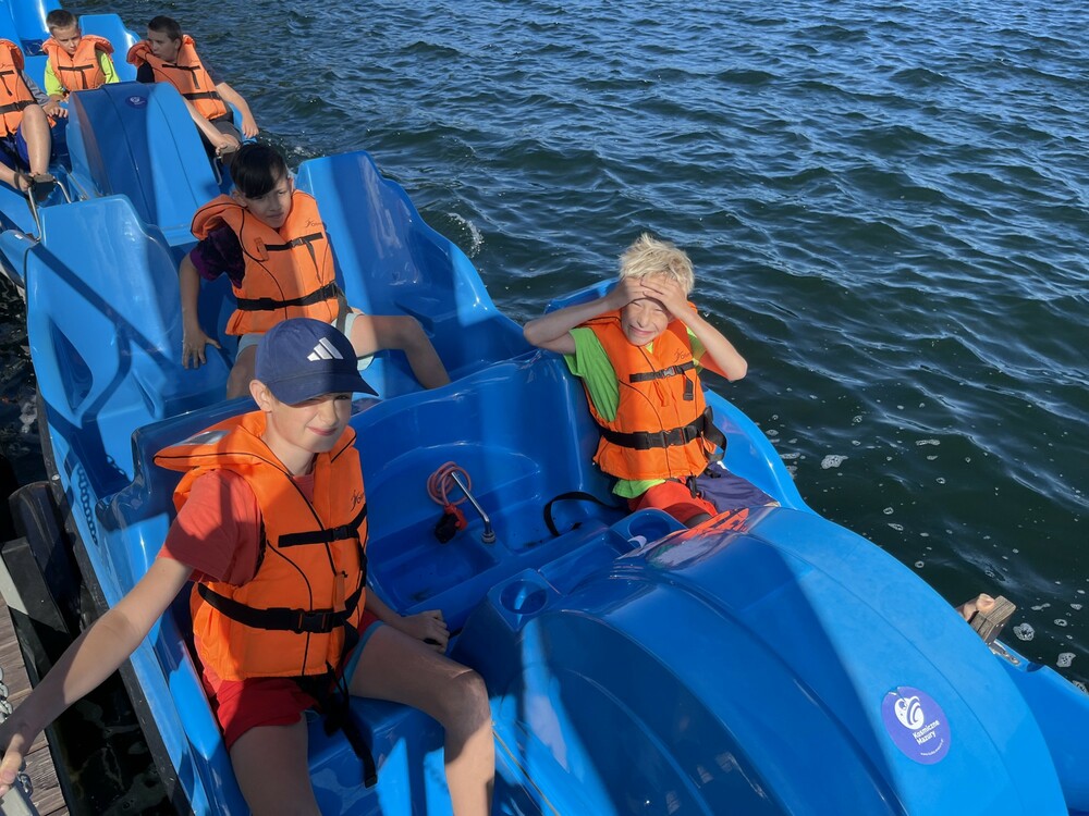 Dzień zaczynaliśmy spacerkiem na kulkowy poligon. Tam jeździliśmy na rangerem i quadami, a nawet toczyliśmy się w zorbie. Po powrocie czekała na nas kolejna porcja atrakcji. Udaliśmy się na mega zabawy. Układaliśmy gigantyczną jengę, graliśmy w twistera, a nawet w duże bierki. Zdecydowanie należał nam się odpoczynek, więc ubrani w kapoki wypłynęliśmy rowerkami wodnymi na jezioro. Na koniec dnia też nie mogliśmy narzekać na nudę, bo rozegraliśmy turniej łuczniczy. Wszyscy świetnie się dziś bawiliśmy.