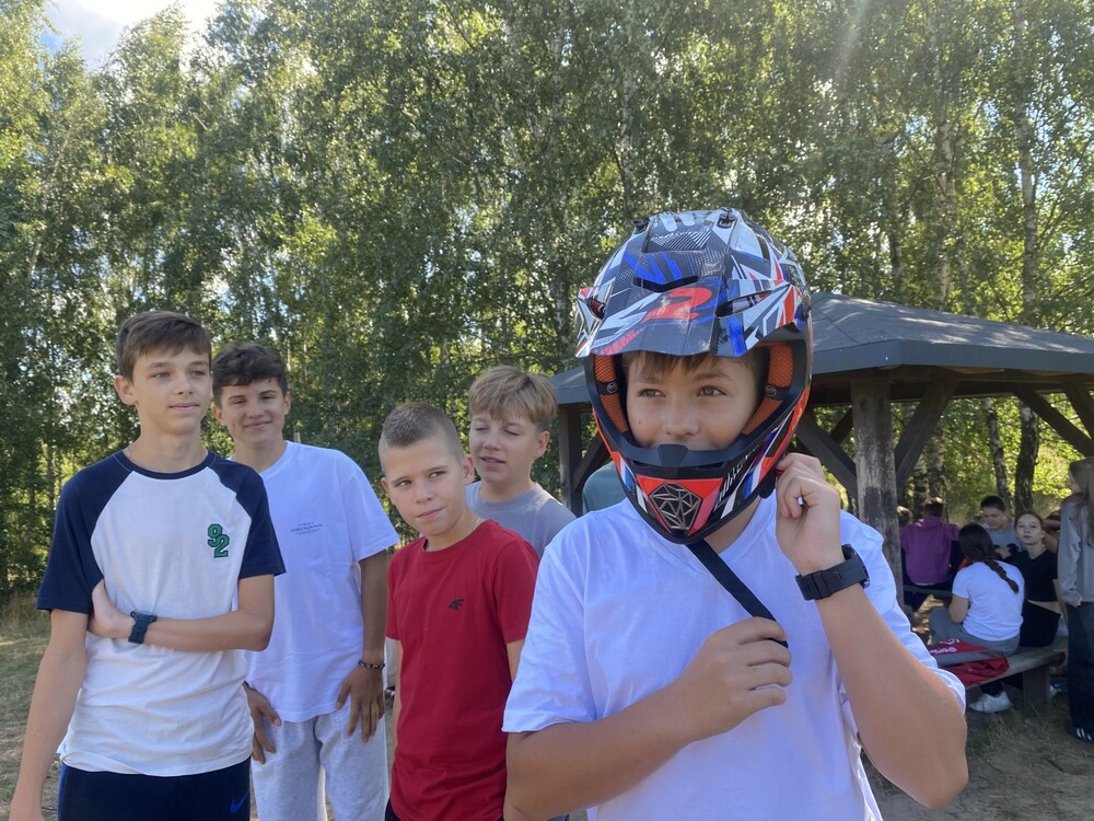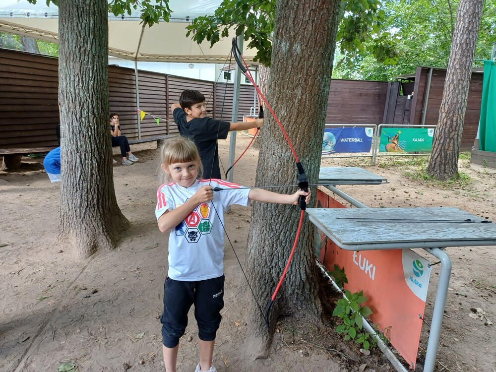 Dziś rano odbyliśmy trening strzelecki z wykorzystaniem wiatrówek, a następnie łuków. Okazało się, że jesteśmy świetnymi strzelcami. Następnie uczyliśmy się jeździć segwayem po specjalnie przygotowanym torze. Po pysznym obiedzie udaliśmy się na plażę i skorzystaliśmy z kąpieli w jeziorze Łęsk. Później mieliśmy Akcję Integrację - rywalizowaliśmy w nietypowych konkurencjach. Wieczorem odbyła się impreza taneczna na Poziomie X.