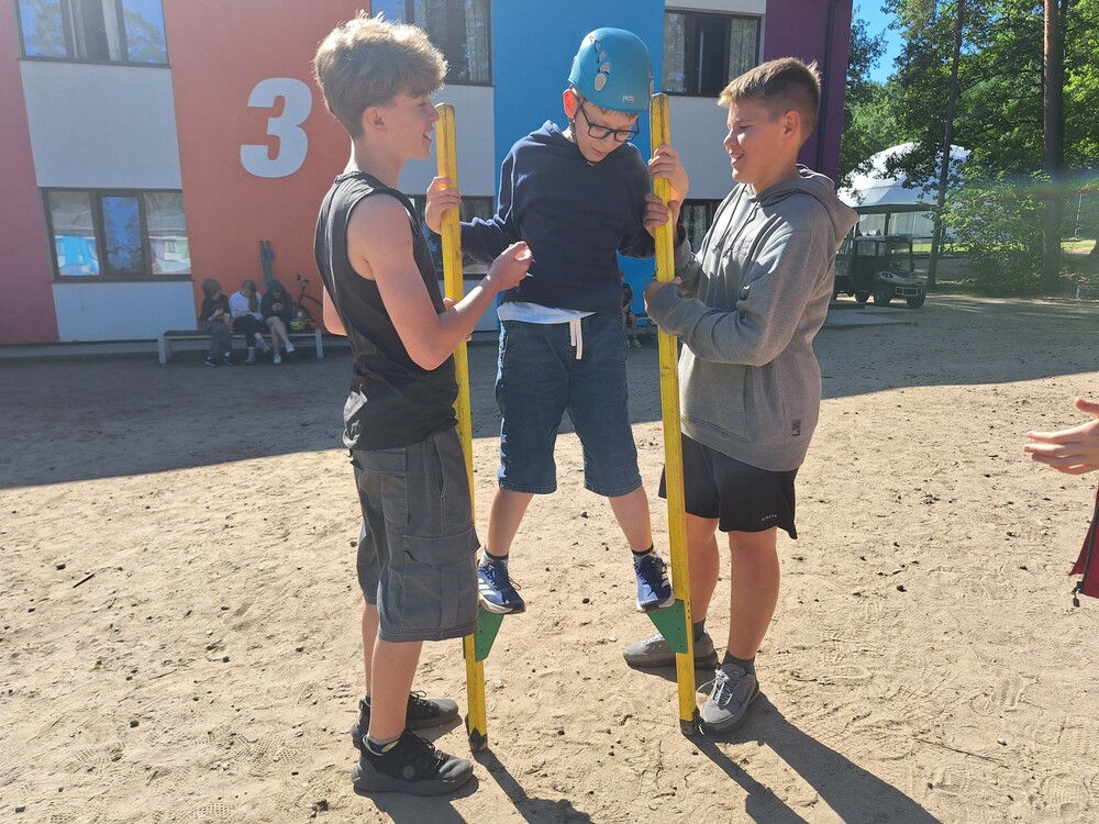 Nadszedł szósty dzień kolonii. Po śniadaniu wybraliśmy się na kosmiczny żyroskop, na którym mieliśmy okazję poczuć się jak astronauci przy starcie rakiety kosmicznej. Następnie rozegraliśmy grę terenową Błędny Azymut, do której używaliśmy kompasów i sprawdzaliśmy wyznaczone przez instruktora współrzędne. Na kolejnych zajęciach bawiliśmy się w cyrk. Poruszaliśmy się na szczudłach oraz jeździliśmy na dziwnym rowerze. Po obiedzie nadszedł czas na relaks na plaży. Następnie podzieleni na grupy graliśmy w grę selfie challenge. Gra polega na wykonaniu zadań do zrobienia specjalnych selfie. Po kolacji świetnie bawiliśmy się na imprezie.