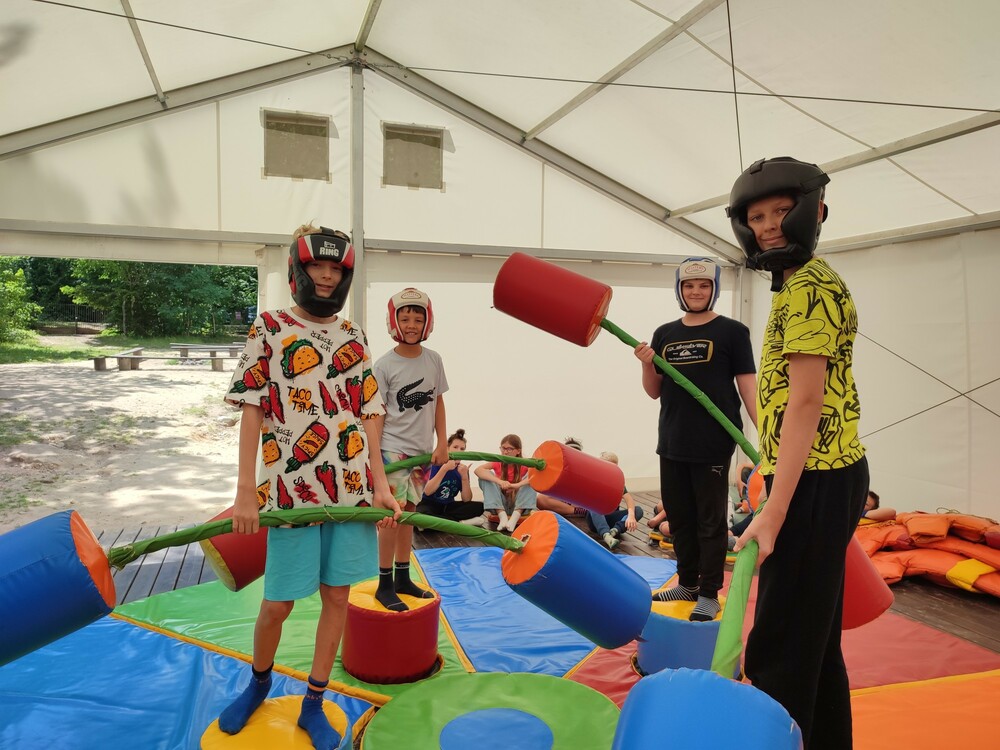 Dzisiaj minęła połowa naszej kolonii. Szósty dzień zaczęliśmy od wizyty na kulkowym poligonie. Braliśmy tam udział w takich atrakcjach jak zorba, quady oraz ranger. Po obiedzie ubrani w specjalną uprząż układaliśmy wieżę ze skrzynek, jednocześnie się na nią wspinając oraz braliśmy udział w Kulkowej Akademii Wiedzy, najpierw zapoznając się z encyklopedią Yazruma. Dzień zakończyliśmy imprezą na Poziomie X.