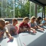 Dzień rozpoczęliśmy od zajęć Ale Cyrk! Uczyliśmy się chodzić na szczudłach oraz jeździć na dziwnym rowerze. Następnie próbowaliśmy swoich sił we wspinaniu się na wieżę ze skrzynek, którą samodzielnie budowaliśmy. Pływaliśmy dziś też jednoosobowymi kajakami bezburtowymi po jeziorze Łęsk. Po południu wzięliśmy udział w warsztatach wrażliwości estetycznej, podczas których komponowaliśmy ogródki dla Yazruma. Były także kosmiczne warsztaty kulinarne. Tworzyliśmy również własne naklejki. Wieczór upłynął nam na wspólnej zabawie przy ognisku i pieczeniu kiełbasek.