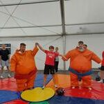 Dzisiaj rozpoczęliśmy od przejścia na poligon, gdzie quadem pokonywaliśmy trudny teren w specjalnie wydzielonej strefie, pojazdem terenowym ranger przejechaliśmy przez najtrudniejsze przeszkody na przygotowanym torze oraz przemieszczaliśmy się w wielkiej dmuchanej kuli. Po powrocie z poligonu w przebraniu zawodników sumo stoczyliśmy pojedynki na specjalnej arenie. Przed kolacją wybraliśmy się w rejs kajakiem turystycznym po jeziorze Łęsk. Na koniec dnia czekała nas impreza na Poziomie X!