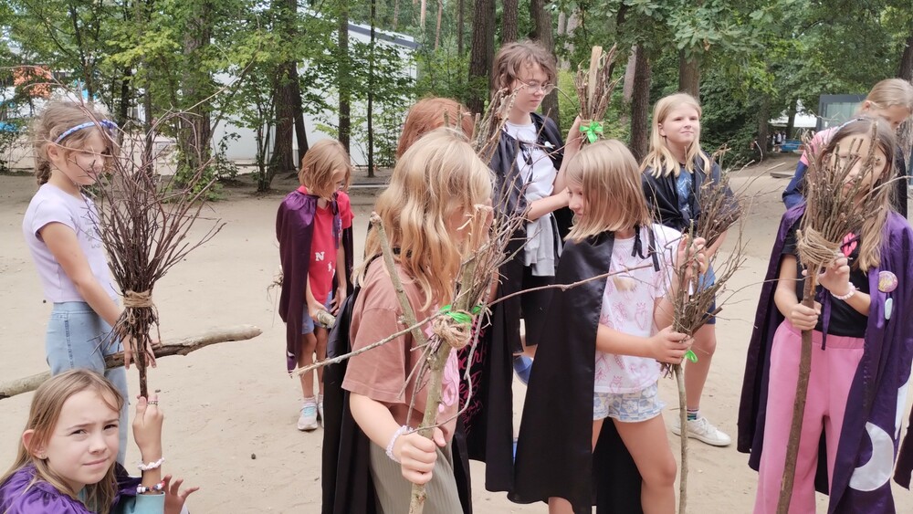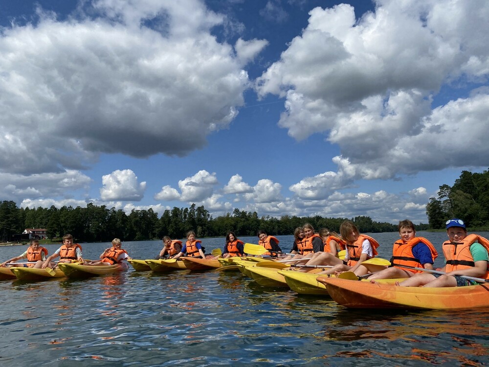 Dzisiejszego ranka poznaliśmy tajniki kompasu oraz dowiedzieliśmy się, co zrobić, gdy stracimy orientację w terenie. Wspinaliśmy się niczym po skałach po ściance wspinaczkowej, a potem przepłynęliśmy piękne jezioro Łęsk na rowerkach wodnych. Następnie nadszedł czas na pakowanie i pożegnanie się z koleżankami i kolegami oraz całą kadrą na apelu pożegnalnym, który zakończyliśmy świetną imprezą taneczną pod gołym niebem.
