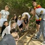 To już przedostatni dzień w Kulce, a zaczęliśmy go od Operacji Desantowej Przyczółek. Najpierw udaliśmy się kajakami na wyprawę w poszukiwaniu zadań na jeziorze. Po ich rozwiązaniu dostaliśmy wskazówkę dotyczącą klucza, który miał się nam przydać w drugiej części gry. Gdy wykonaliśmy wszystkie zadania, otworzyliśmy skrzynię z niespodzianką. Kolejnymi zajęciami były łuki. Poznaliśmy ich budowę oraz prawidłową postawę łucznika. Po kilku próbnych strzałach zawalczyliśmy o tytuł najlepszego łucznika. Odbył się również apel końcowy, a dzień i cały obóz zakończyliśmy dyskoteką pod gwiazdami.