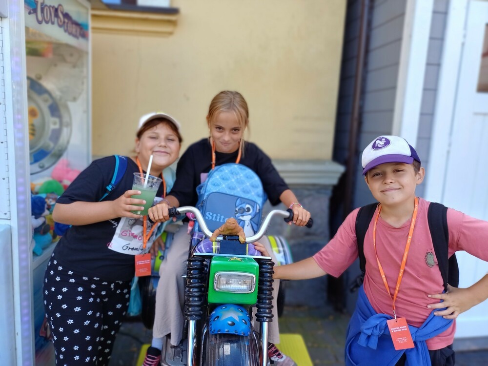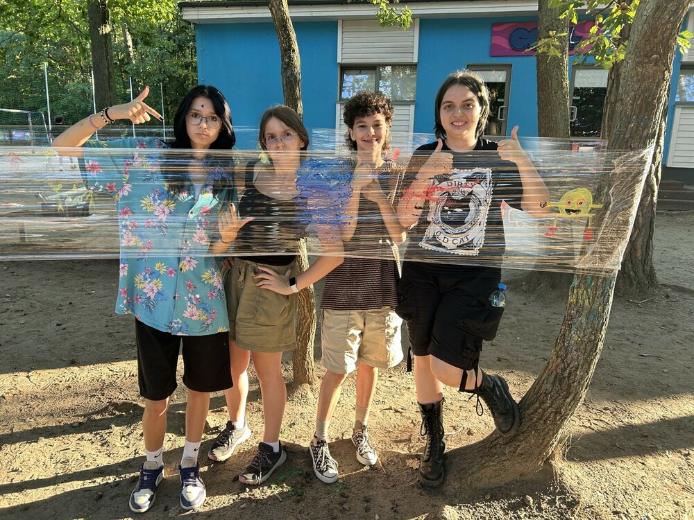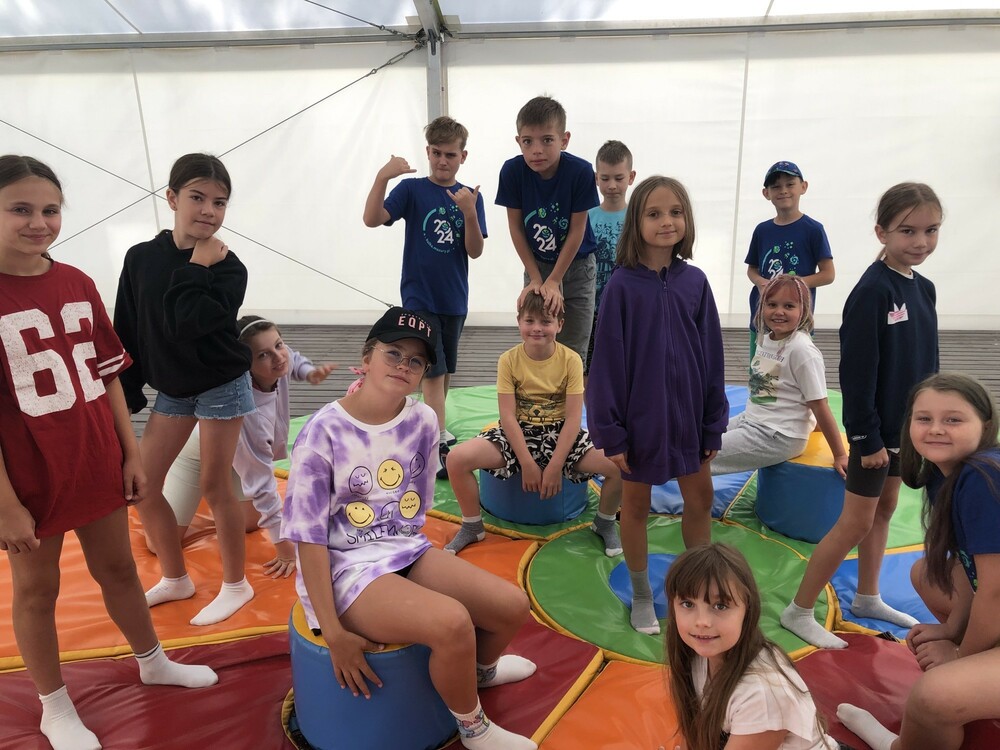 Dziś rano udaliśmy się do Mikołajek. Zwiedzaliśmy miasto, robiliśmy zdjęcia ważnych miejsc. W ufobusie poznaliśmy również nagrania z archiwum Kosmicznych Mazur. Po pysznym obiedzie poznaliśmy różne sposoby szyfrowania wiadomości i chowaliśmy zadania dla siebie nawzajem. Następnie wzięliśmy udział w walkach gladiatorów i rywalizowaliśmy na macie przy użyciu gumowej lancy. Wieczorem odbyła się dyskoteka z DJ-em i supermuzyką w Cool Clubie.