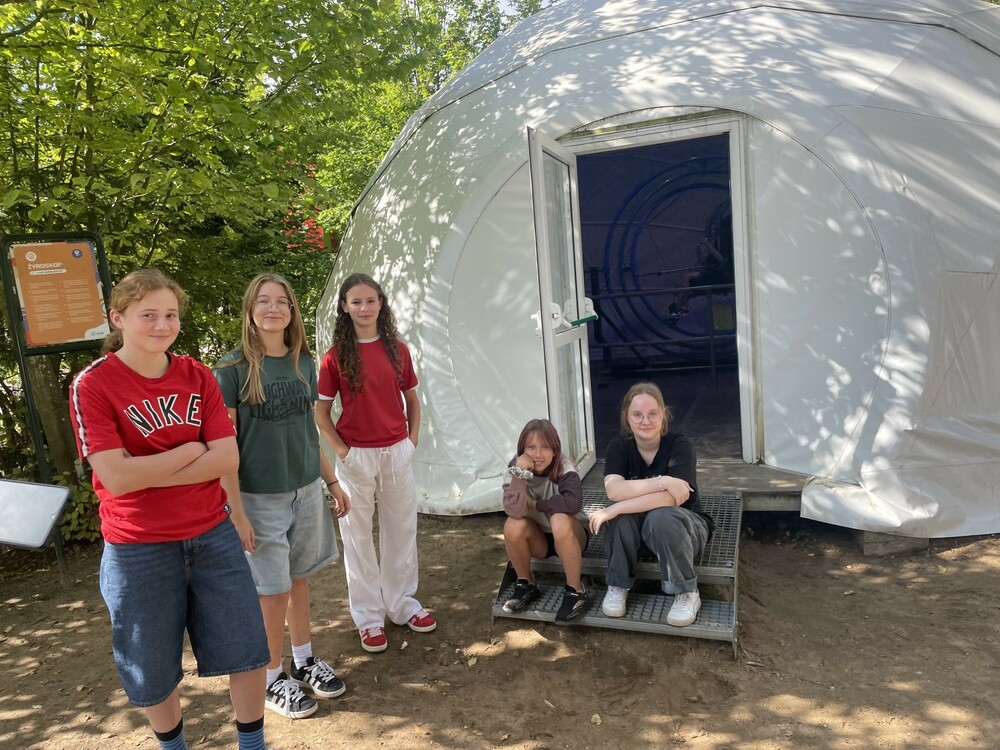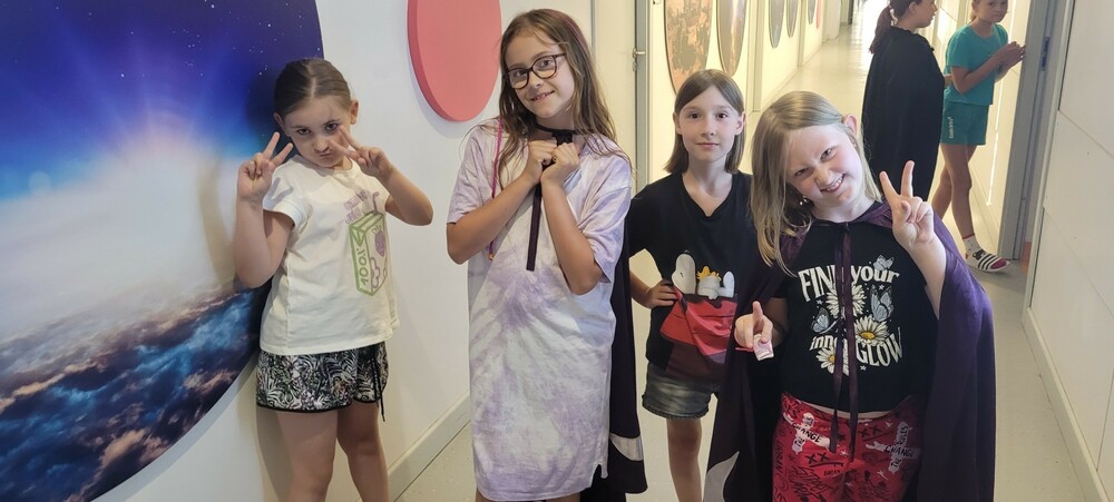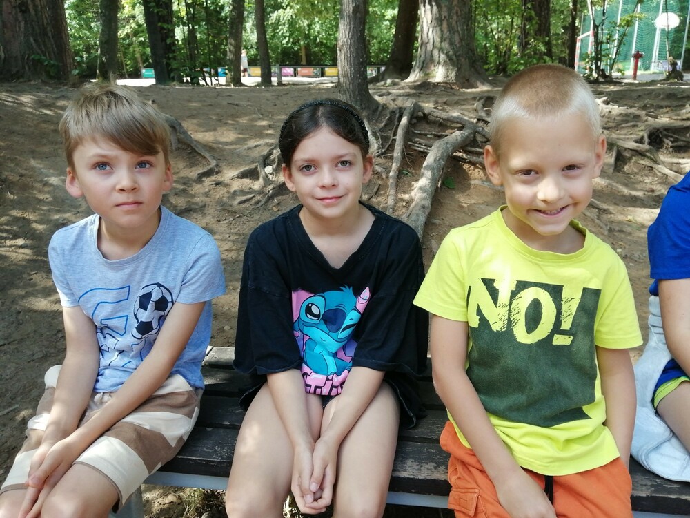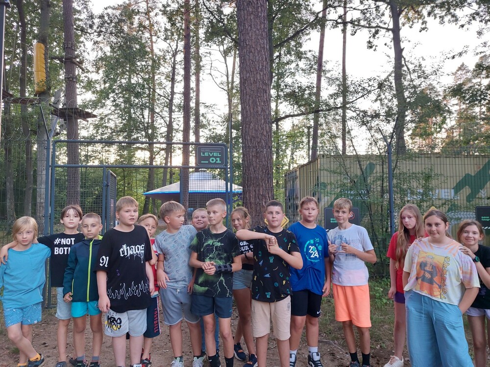 Dzień rozpoczęliśmy od żyroskopu, na którym mogliśmy poczuć się niczym astronauci startujący rakietami. Następnie dzięki pięknej pogodzie mieliśmy możliwość pójścia na plażę oraz zabaw podczas kąpania się w jeziorze. Później przyszedł czas na park linowy, na którym każdy z nas przeszedł dwie trasy. Po zjedzonym obiedzie zagraliśmy w popularną grę – chowany, a potem udaliśmy się na wyprawę rowerkami wodnymi po jeziorze Łęsk. Na koniec dnia kosmita Yazrum przygotował dla nas ciekawostki na temat Ziemi i Wszechświata, a później sprawdził naszą wiedzę.