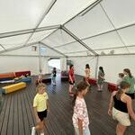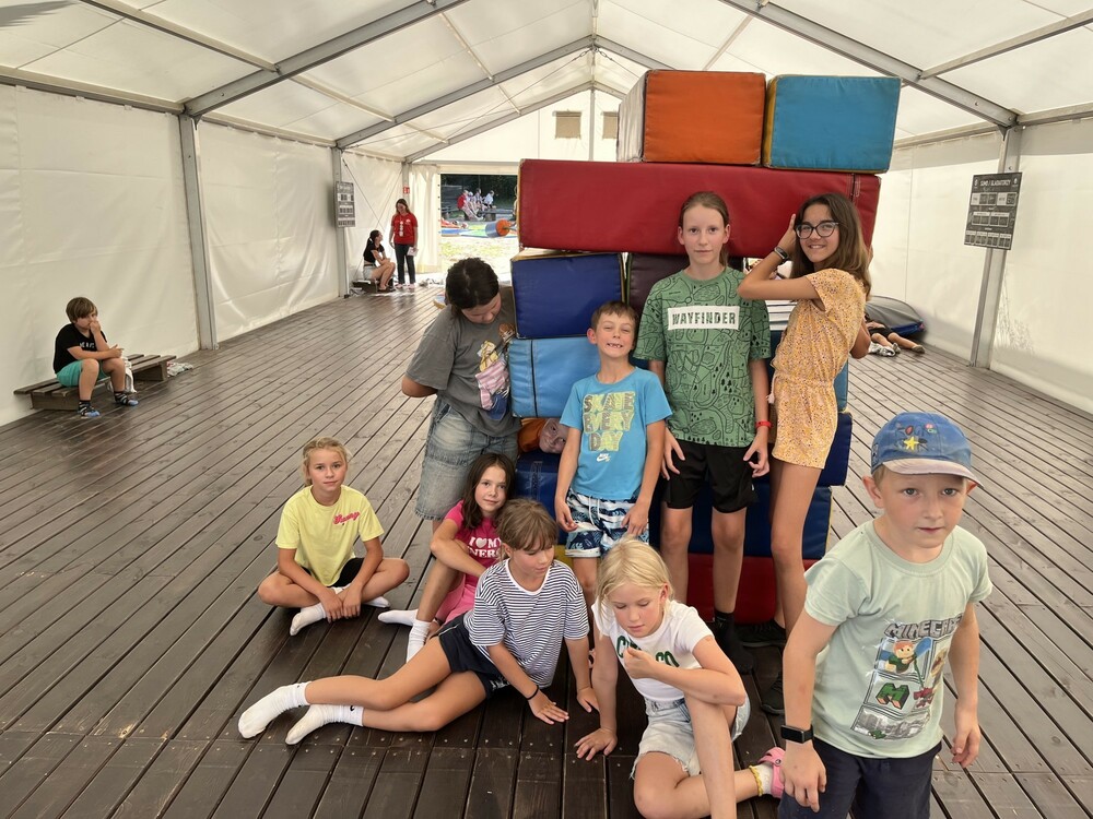 Dzięki wczorajszemu szkoleniu na strzelnicy, dziś mogliśmy odbyć grę paintballową, podczas której podzieliliśmy się na dwie drużyny i stoczyliśmy walkę. Następnie odpoczęliśmy na plaży i wykąpaliśmy się w naszym jeziorze. Na zajęciach sumo ubraliśmy zabawne stroje i rywalizowaliśmy na macie. Potem założyliśmy specjalne uprzęże i skakaliśmy na trampolinach podczas eurobungee. Dzień zakończyliśmy walkami gladiatorów. Wyposażyliśmy się w gumowe lance i na macie staraliśmy się stracić drugą osobę z podestu.