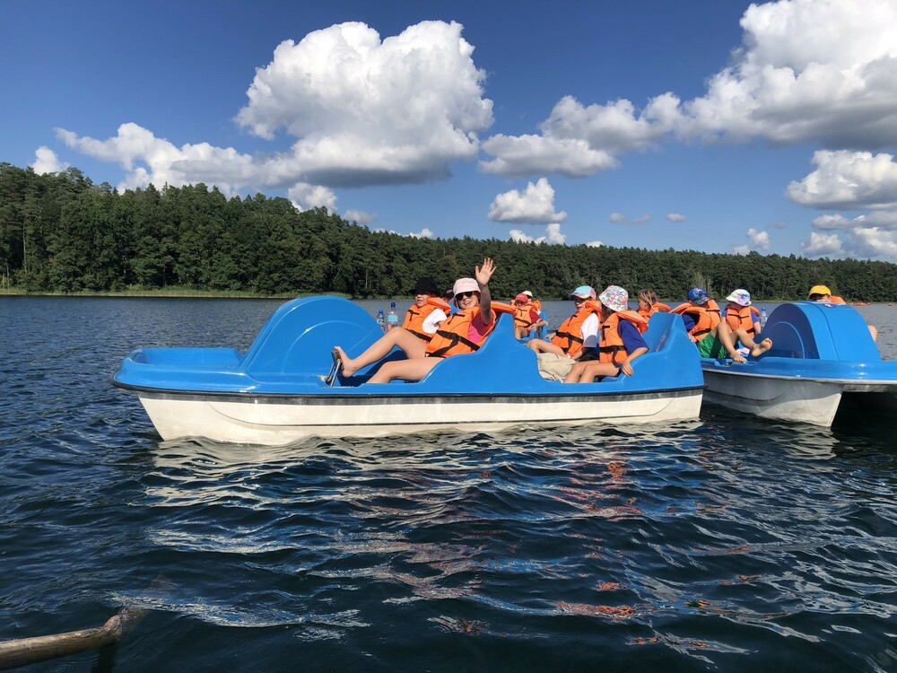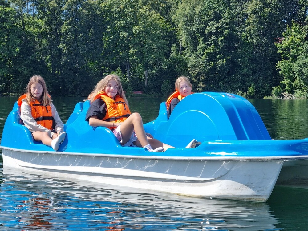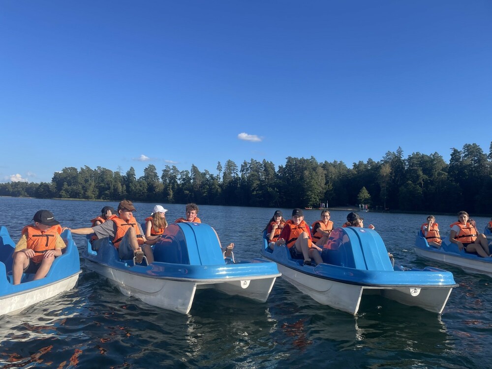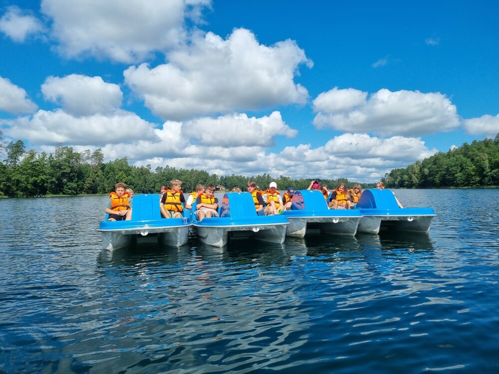 Z samego rana toczyliśmy walki gladiatorów. Później poszliśmy na plażę i pływaliśmy w jeziorze. Następnie kręciliśmy się na kosmicznym żyroskopie. Po obiedzie pływaliśmy rowerami wodnymi i bawiliśmy się wspólnie w różne zabawy integracyjne. Wieczorem świetnie się bawiliśmy na dyskotece.