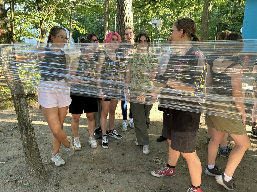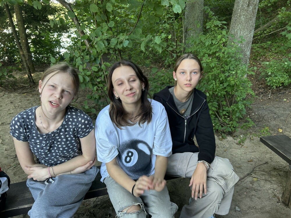Nasz dzień rozpoczęłyśmy od układania hymnu naszej grupy. Następnie spróbowałyśmy naszych sił na dwóch poziomach parku linowego, a później odpoczywałyśmy na słonecznej plaży. Podczas kręcenia żyroskopem mogłyśmy się poczuć jak w chmurach, było niesamowicie! Wieczorem odbyło się ognisko z mnóstwem zabaw, śpiewów i pieczeniem kiełbasek. Ciekawe, co czeka nas jutro!