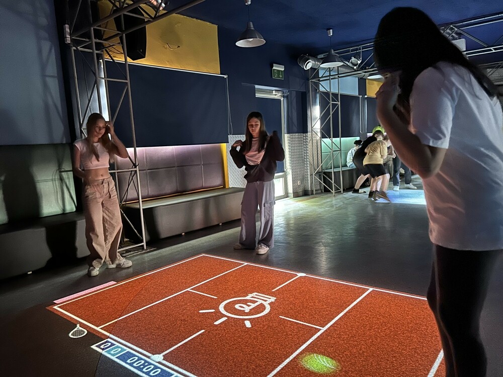 Dzień zaczęliśmy od eurobungee - wyposażeni w uprzęże oddawaliśmy wysokie skoki na trampolinie. Na kolejnych zajęciach toczyliśmy walki sumo. Przekroczyliśmy dziś także bramę Strefy UFO, a w niej weszliśmy do kokpitu spodka i obejrzeliśmy film o historii kosmitów na Mazurach. Po pysznym obiedzie rozegraliśmy grę paintballową, mieliśmy do wystrzelenia po 150 kulek! Następnie bawiliśmy się w wirtualnym świecie, odbyliśmy różne mecze i pojedynki na interaktywnych dywanach. Ten aktywny dzień zakończyliśmy seansem w kinie sferycznym 3D.