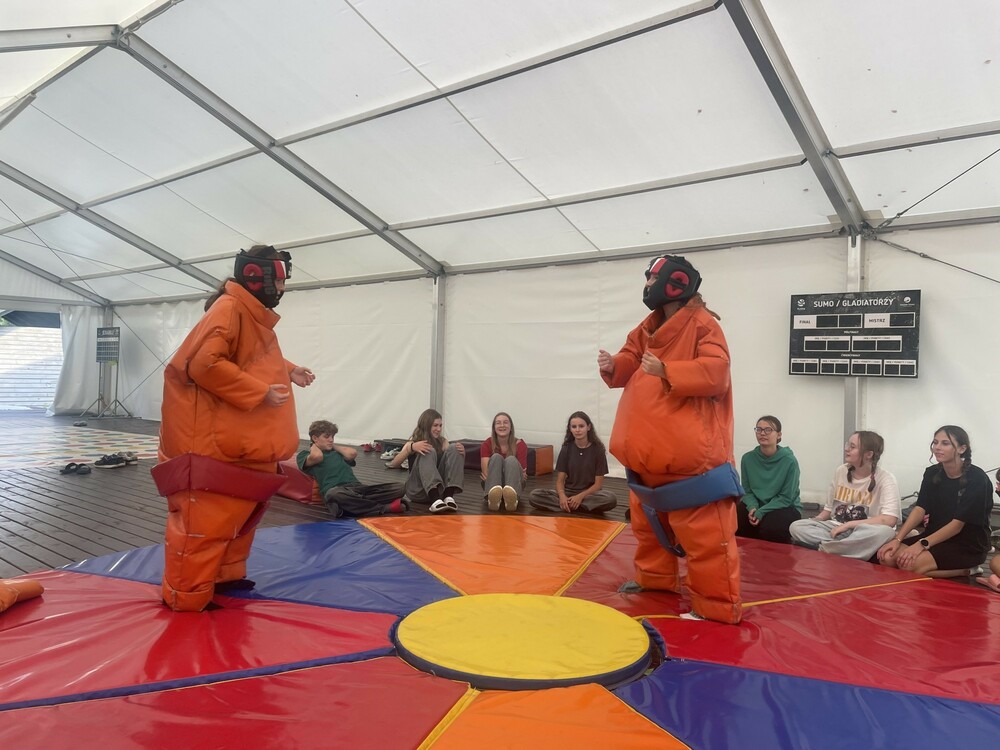 Kolejny dzień minął nam w mgnieniu oka. Rozpoczęliśmy go od wspólnego spaceru po Leśnej Ścieżce Edukacyjnej aż do pobliskiej miejscowości. Następnie udaliśmy się na animowany seans filmowy do Cool Clubu. Później uczestniczyliśmy w nauce strzelania z wiatrówek, po której braliśmy udział w turnieju strzelniczym. Pod wieczór w zabawnych strojach zorganizowaliśmy mistrzostwa walk sumo. Po kolacji przyszedł czas na wyczekiwaną dyskotekę, na której bawiliśmy się i wspólnie tańczyliśmy.
