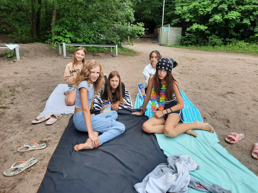 Dziś czekały na nas niesamowite wrażenia! Wybrałyśmy się na spacer Leśną Ścieżką Edukacyjną. Uczyłyśmy się szyfrowania z Hermesem podczas zajęć Enigma, a później spróbowałyśmy wykorzystać nowe umiejętności w praktyce. Następnie wyruszyłyśmy na wyprawę po jeziorze Łęsk, podziwiałyśmy brzegi rezerwatu Kulka i świetnie się bawiłyśmy. Wieczorem odbyła się dyskoteka z ulubionymi hitami, podczas której tańcom nie było końca!